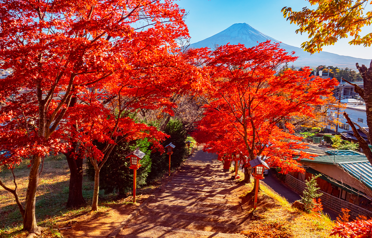 【新倉山淺間公園】新晉網紅景點,被稱為“全世界攝影師在死前一定要去的21個地方”之一。這裡是觀賞富士山全景的絕佳位置,登上本殿附近的397級臺階,,可以將“富士山&山下街景”一次全拍下,世界各國的攝影師和遊客都為了觀賞這幅景緻紛至沓來,不僅是春天櫻花,這裡夏季新綠、秋天紅葉和冬天雪景都非常漂亮,還可以俯瞰極富魅力的富士吉田市內的街景。