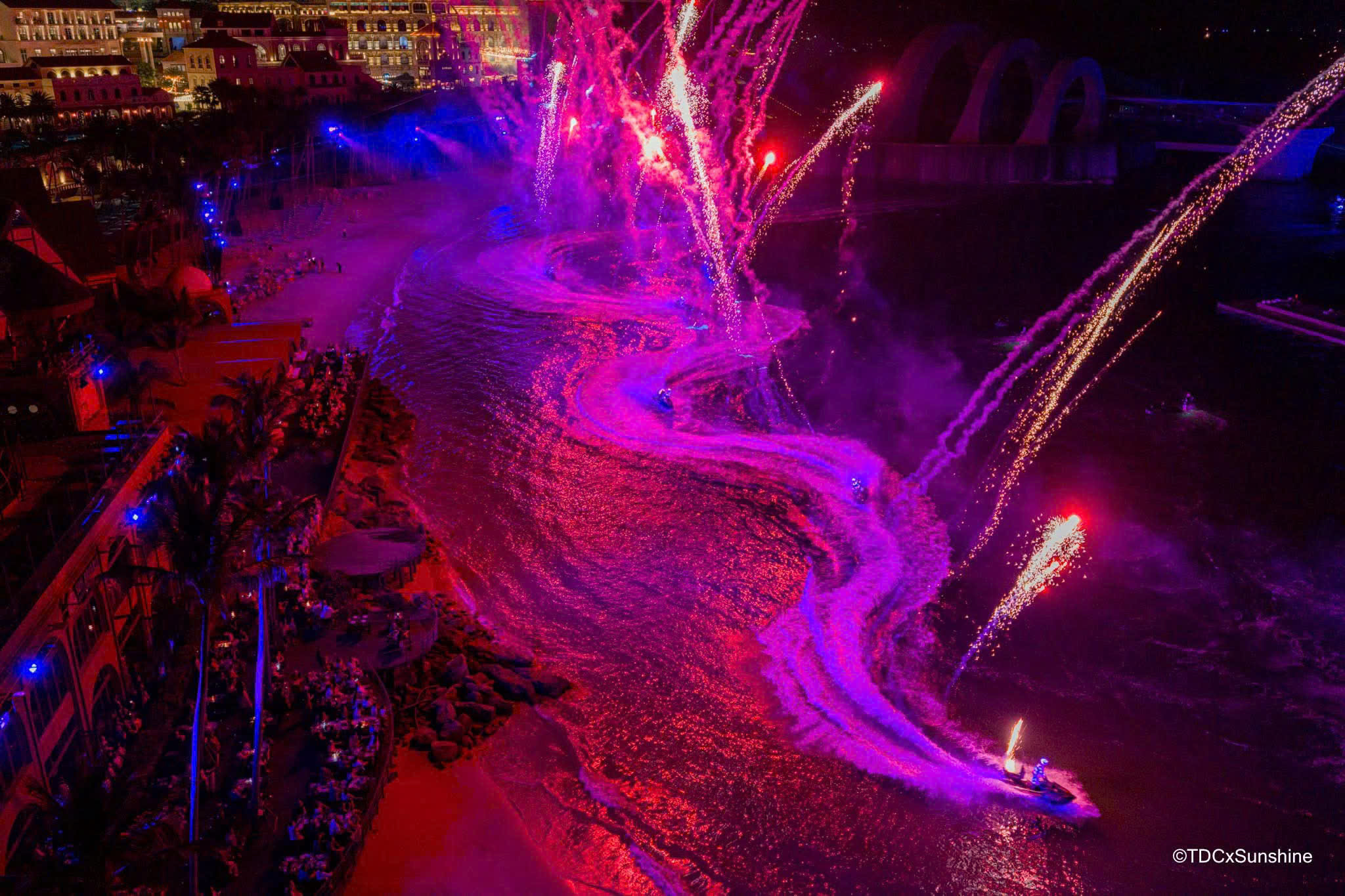 - 體驗令人驚歎的水上煙火和世界級運動員在海上表演的高空水上摩托特技,點亮夜空
