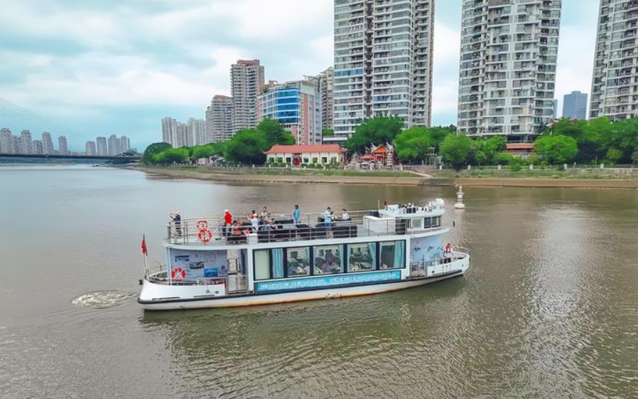 - 17 點 20 分,乘坐水上巴士,從煙臺山碼頭出發,途經江心島,抵達蒼霞碼頭。在船上可以欣賞閩江兩岸的風景,天氣好時還能在二層甲板拍照,看看煙臺山、江心公園和老式中亭街建築,追逐落日餘暉。18 點結束行程,乘車返回散團。
