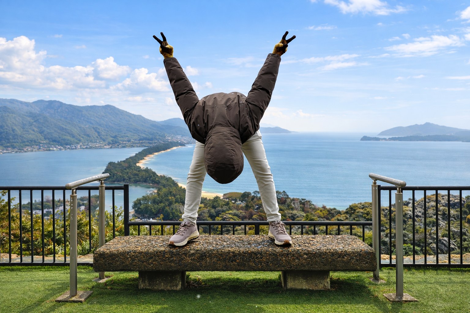 - 下一站,飛龍升天的天橋立!來「股のぞき」體驗從胯下倒看奇景。再去智恩寺抽扇子籤、吃智慧餅,還有船經過就會旋轉90度的神奇旋轉橋