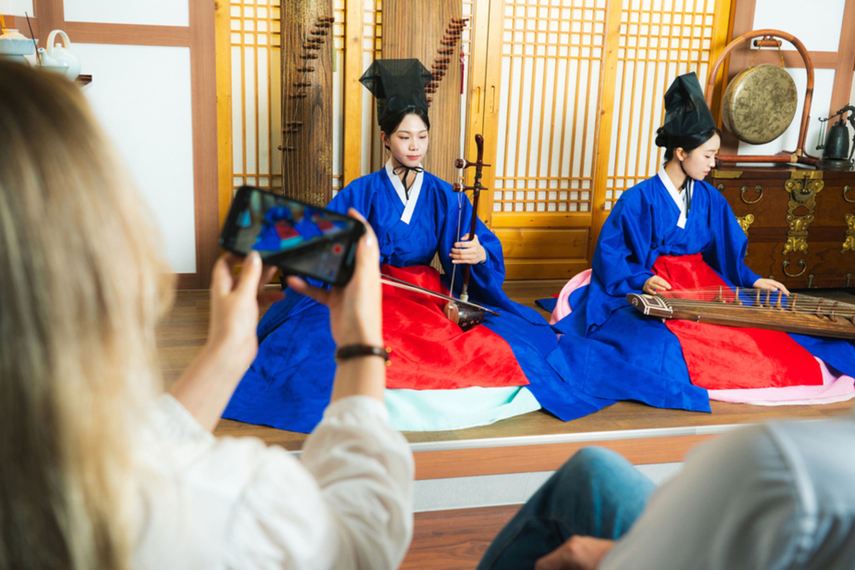 - 享受獨特的文化之旅——從聆聽宮廷正樂到穿著韓服演奏傳統樂器