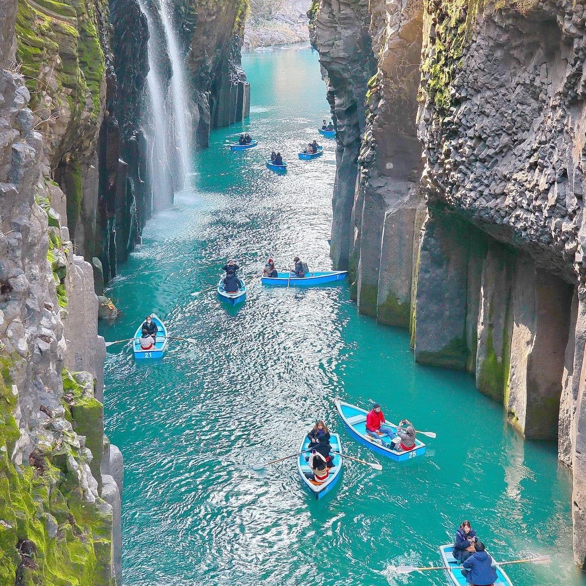 高千穗峽是九州著名的自然奇景,峽谷由火山熔岩冷卻後形成,懸崖峭壁壯麗迷人。