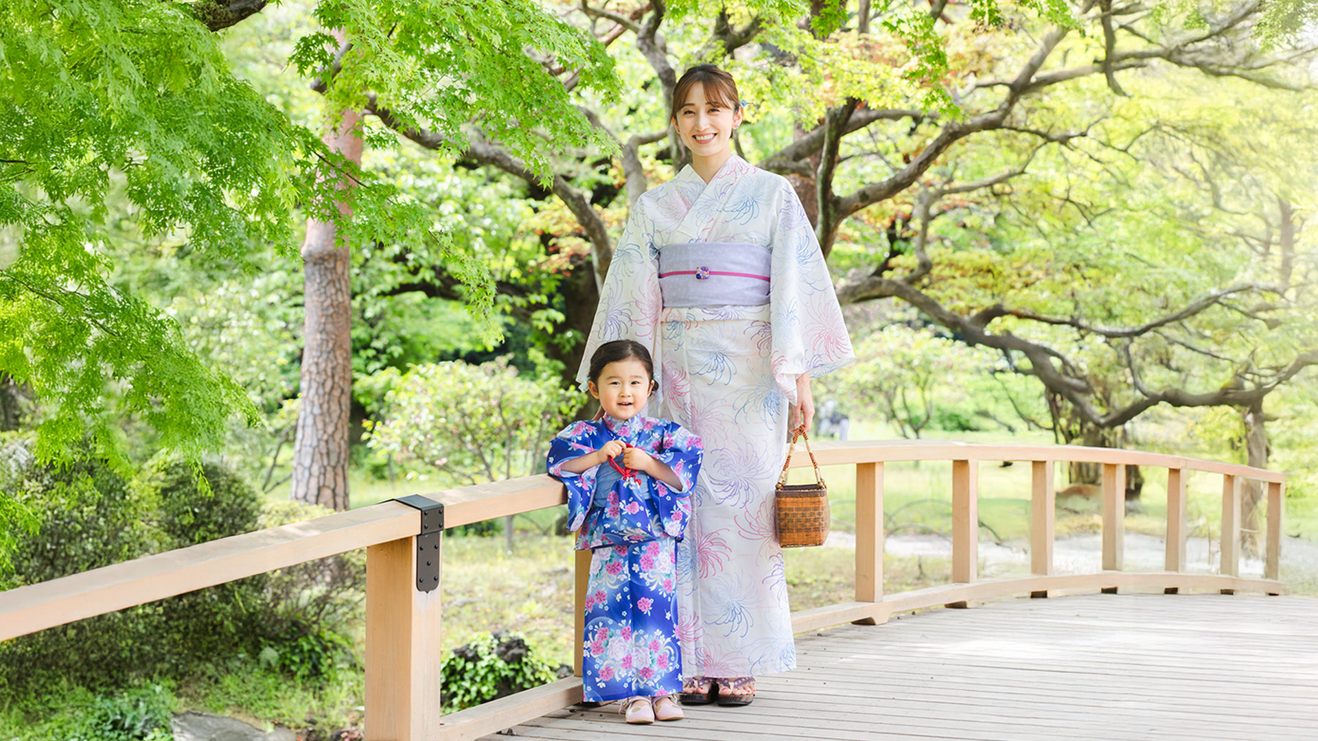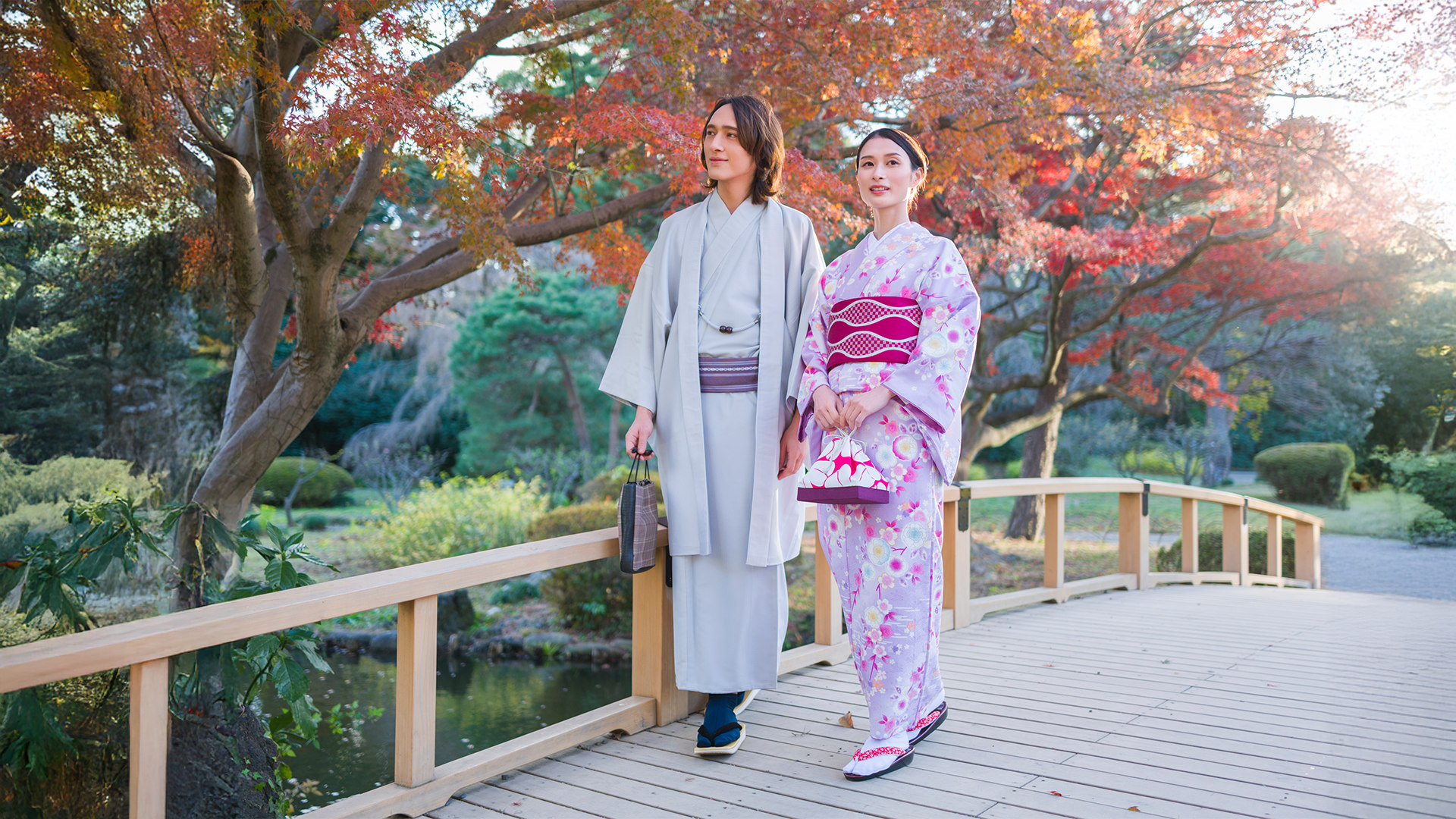 在新宿御苑體驗高級絲綢和服租賃及穿戴服務