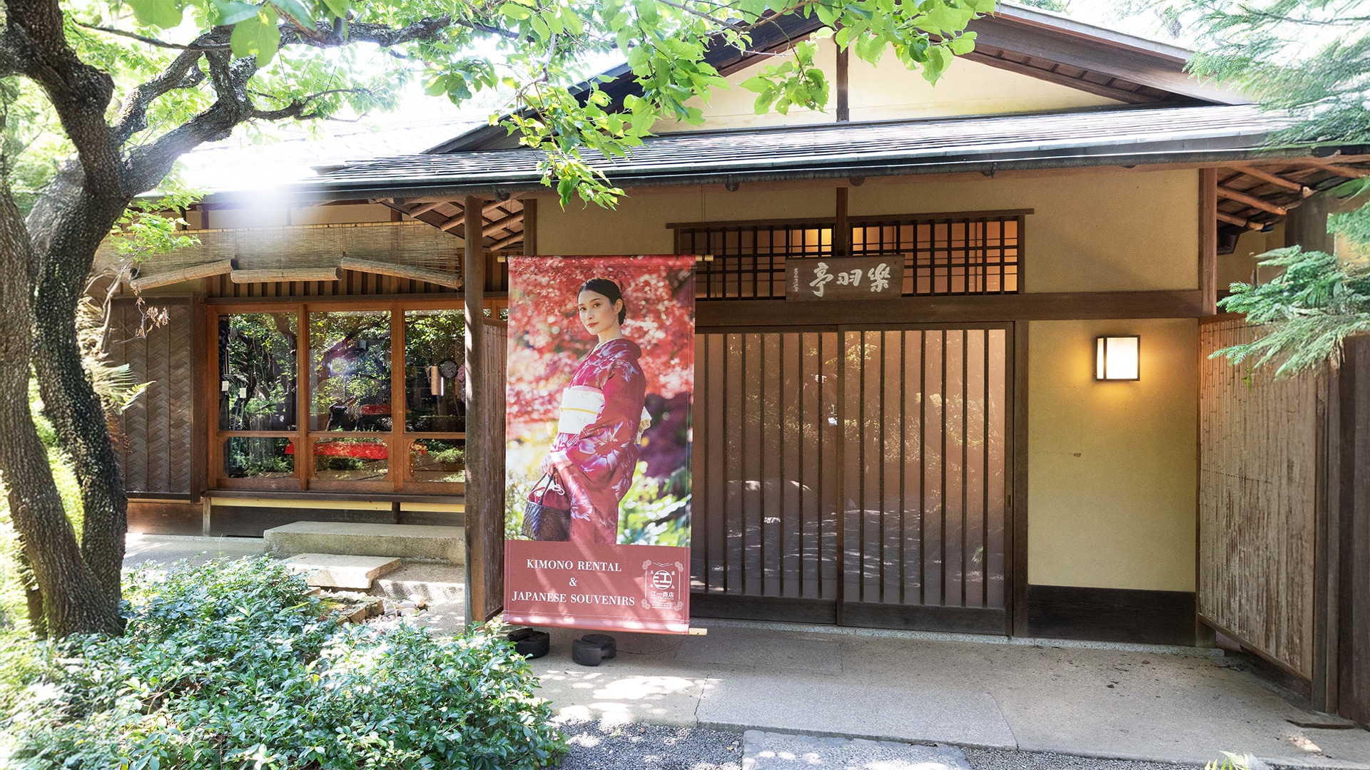 - 我們的和服租賃和日本紀念品商店獨特地坐落在新宿御苑內,位於一間傳統茶館中。