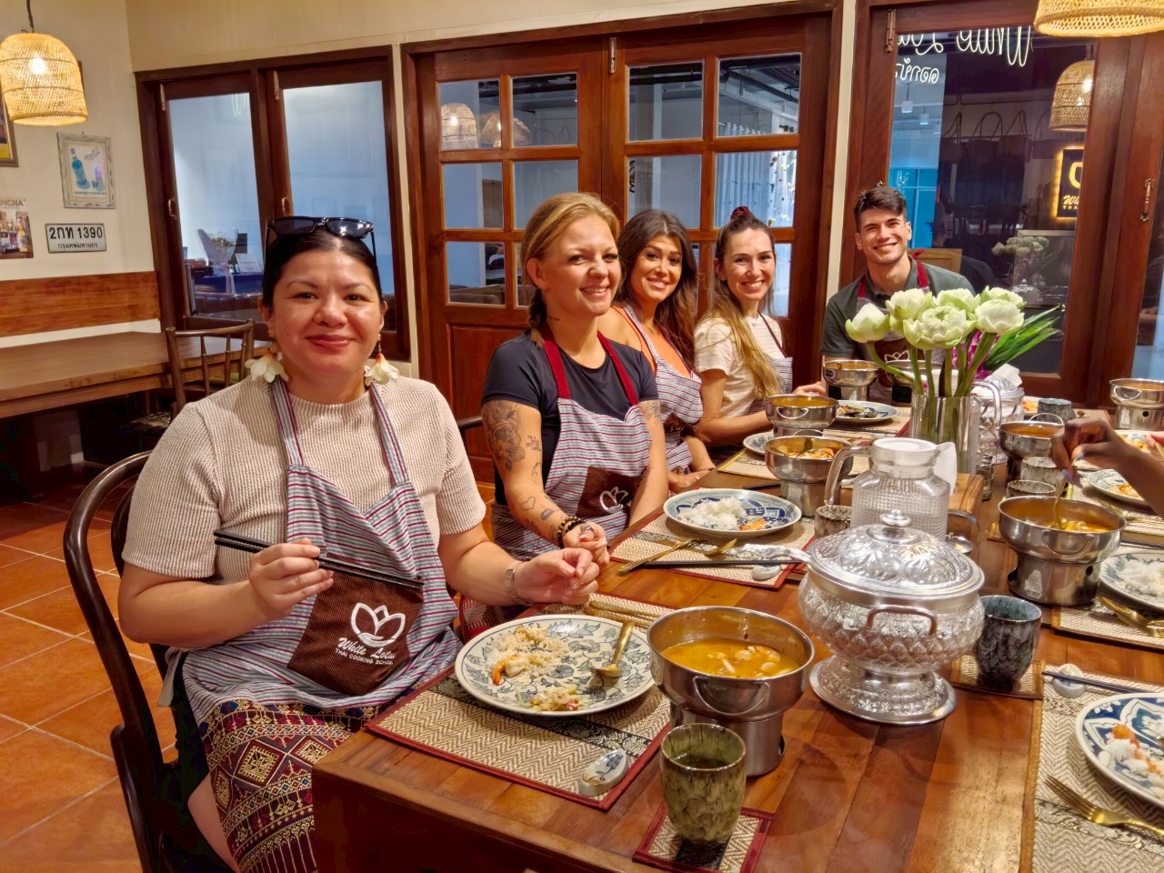 客人將學習如何製作芒果糯米飯、冬陰功湯、泰式炒河粉、青木瓜沙拉,並將在有趣友好的氛圍中與新朋友一起享用熱騰騰、新鮮製作的菜餚。