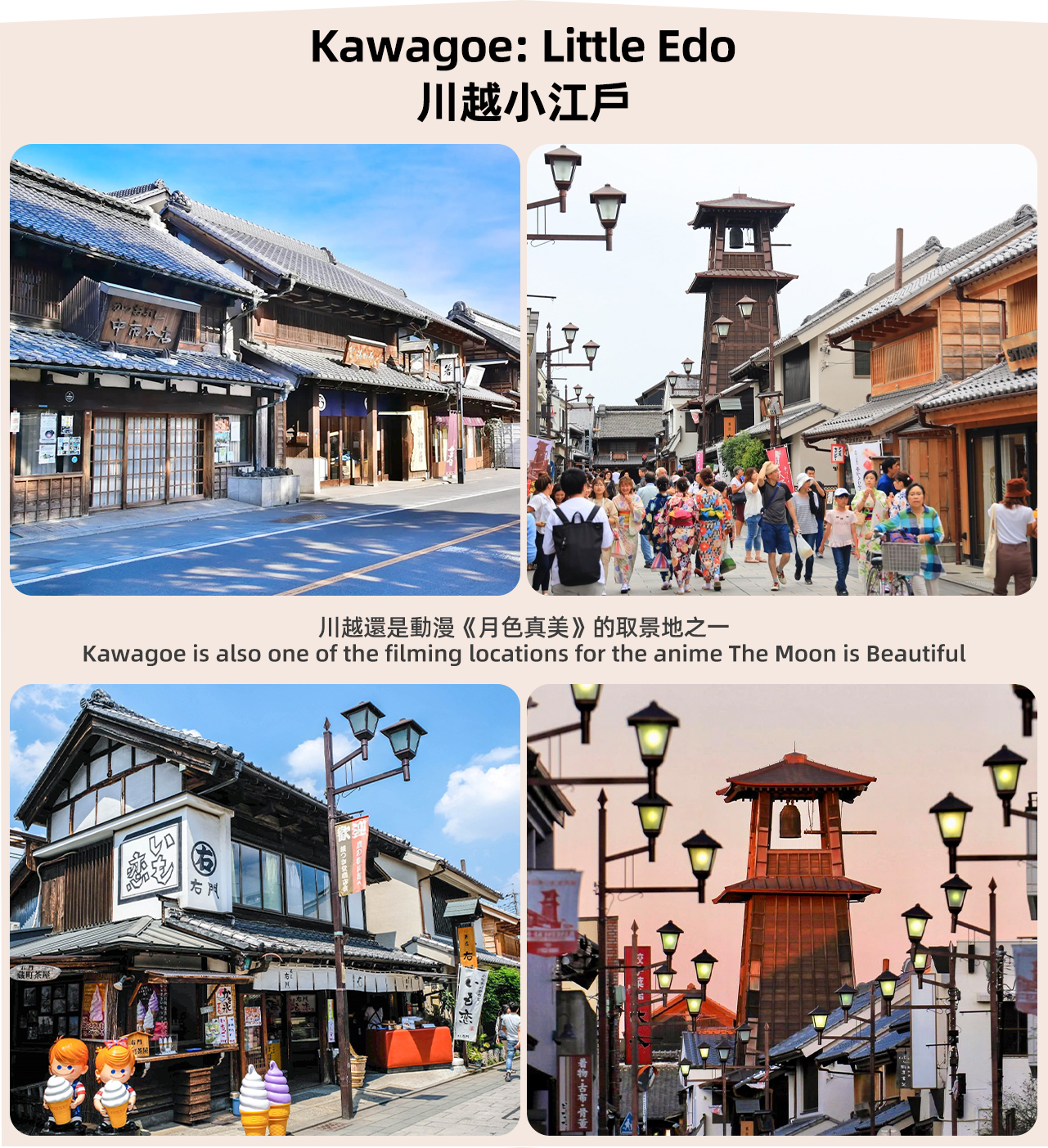 川越在江戶時代非常繁榮,有“小江戶”之稱,是動漫《月色真美》的取景地之一。