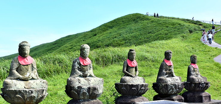 繼續前往大室山(Mt. Omuro),這是一座引人注目的錐形火山,乘坐觀光電梯,沿著火山口頂部的步行道漫步,可以360°全景欣賞伊豆、富士山(Mt. Fuji)和南阿爾卑斯山的美景。