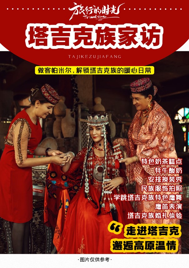 - 第三天:塔縣-紅其拉甫國門-盤龍古道-班迪爾藍湖-庫科西魯克鄉-幸福五號橋-塔吉克族民俗體驗-以上特色根據時間安排如來不及則換第四天上午安排-塔縣【舒適含氧房】