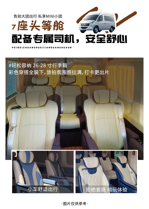 - 9座車改7座車大空間,配備專屬司機服務,無人機航拍燃爆朋友圈,留存美好瞬間