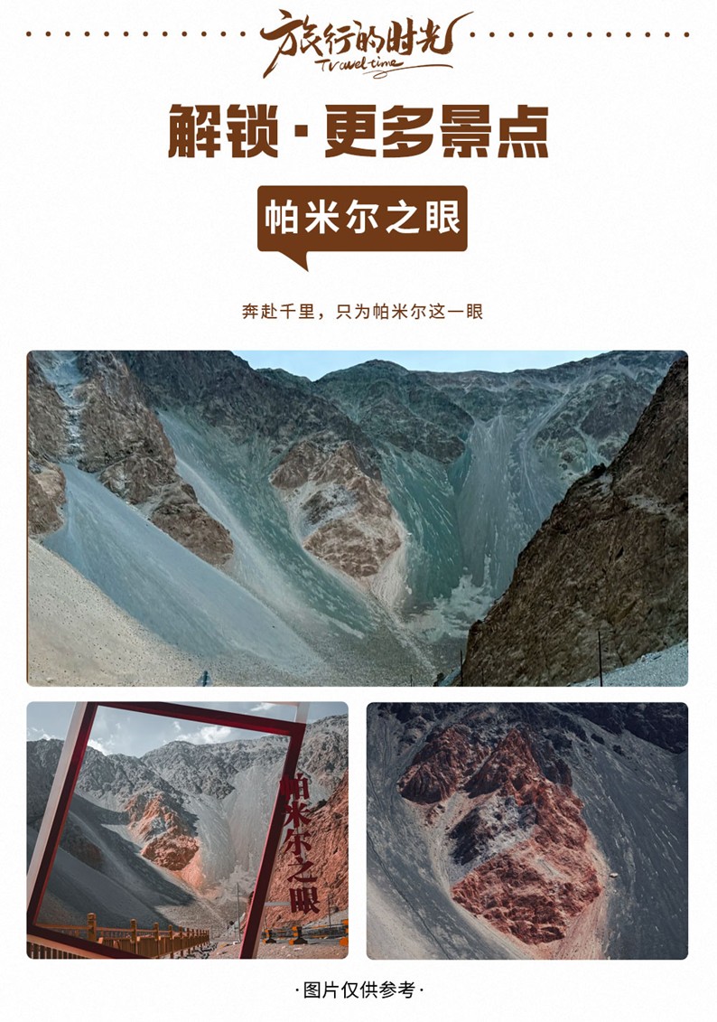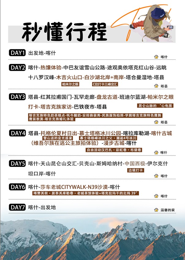 - 第四天:塔縣-託格倫夏村日出-慕士塔格冰川公園-喀拉庫裡湖-喀什古城旅拍體驗-漫步古城-喀什【四鑽飯店】【車程約300KM行車約6H】