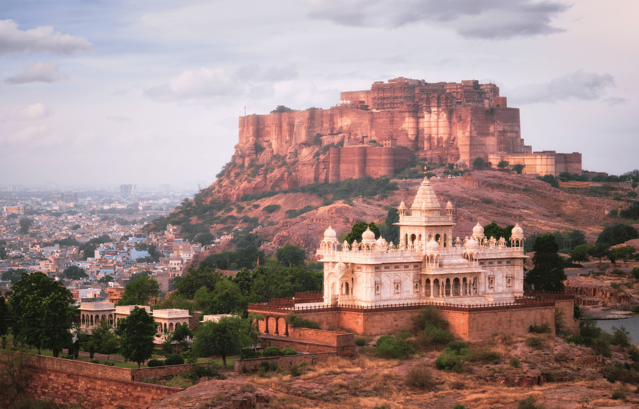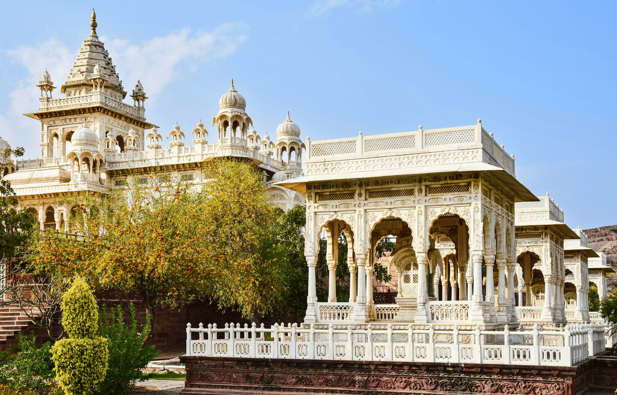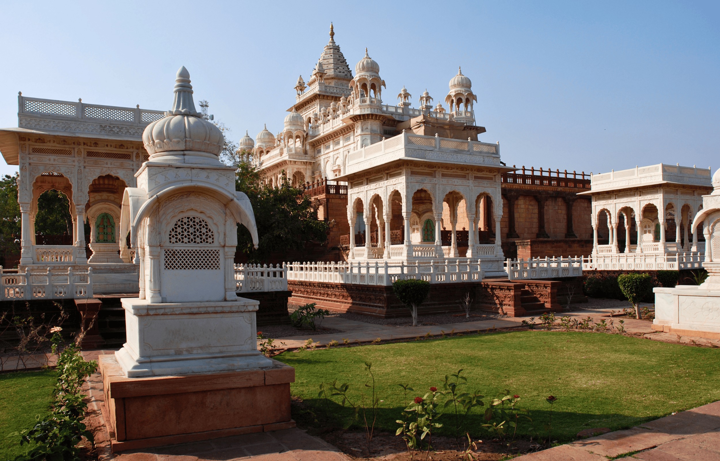 探索焦特布爾最美麗、最寧靜的地標之一——賈斯旺·塔達 (Jaswant Thada),這是一座建於 1899 年的皇家紀念碑。這座令人驚嘆的大理石紀念碑被譽為「馬爾瓦爾的泰姬瑪哈陵」,是為了紀念馬哈拉賈·賈斯旺·辛格二世而建造的。其精緻的雕刻、涼亭和梯田花園使其成為一個寧靜的探索之地。