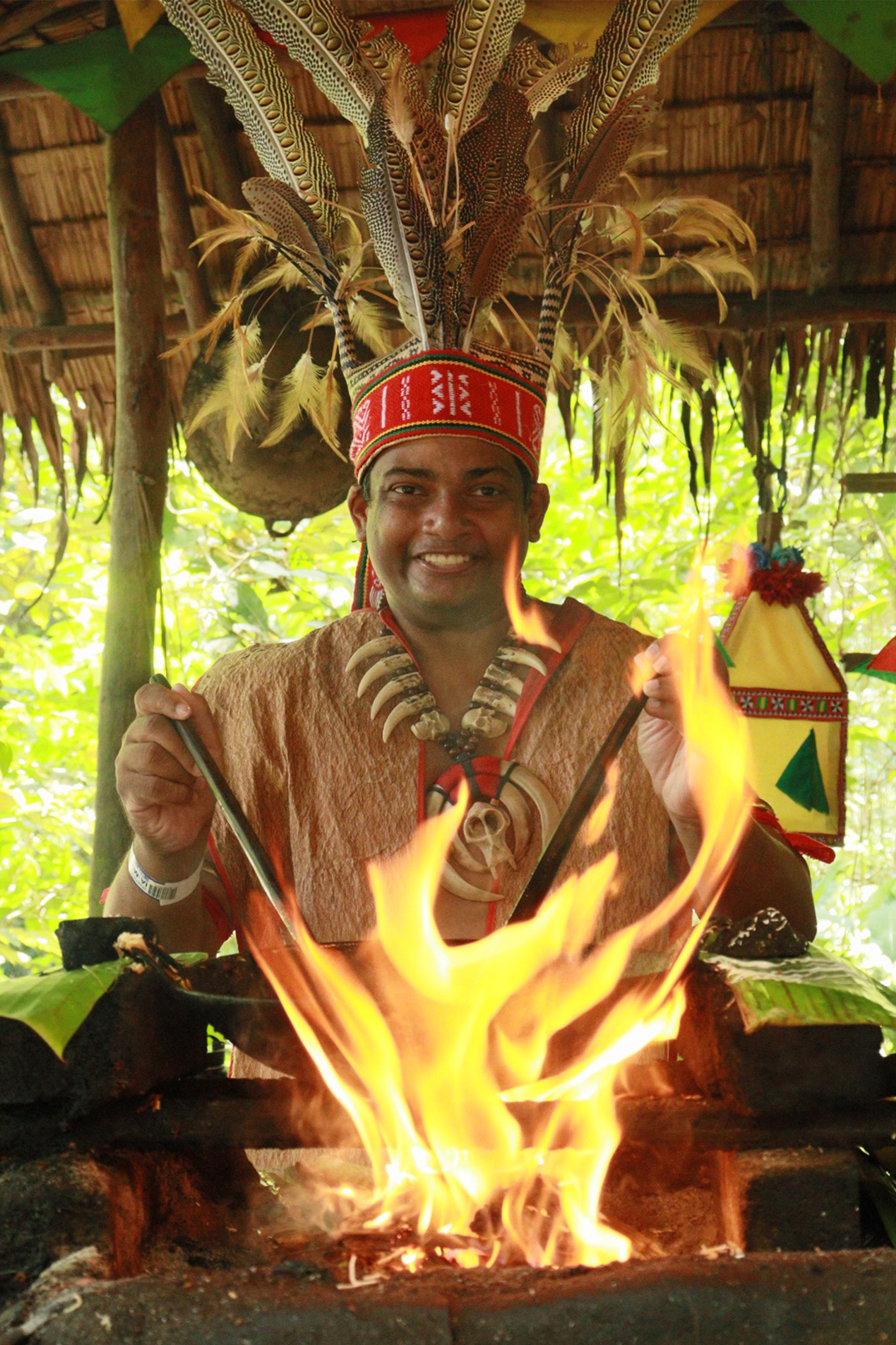品嚐不同美食,觀看傳統表演:吹箭製作、生火等。