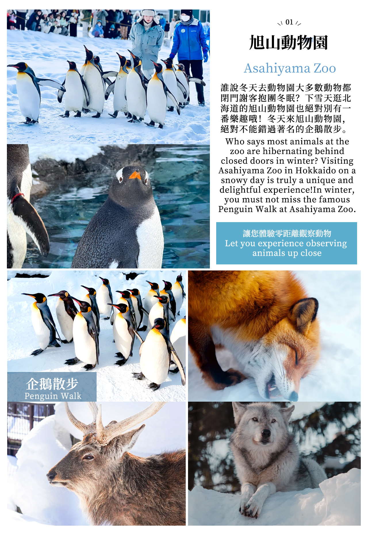 12–3 月冬日限定:旭山動物園(贈門票)看企鵝踏雪散步,車覽美瑛網紅樹,漫步夢幻精靈露臺,四季彩之丘體驗雪上活動,冬日魅力滿滿!
