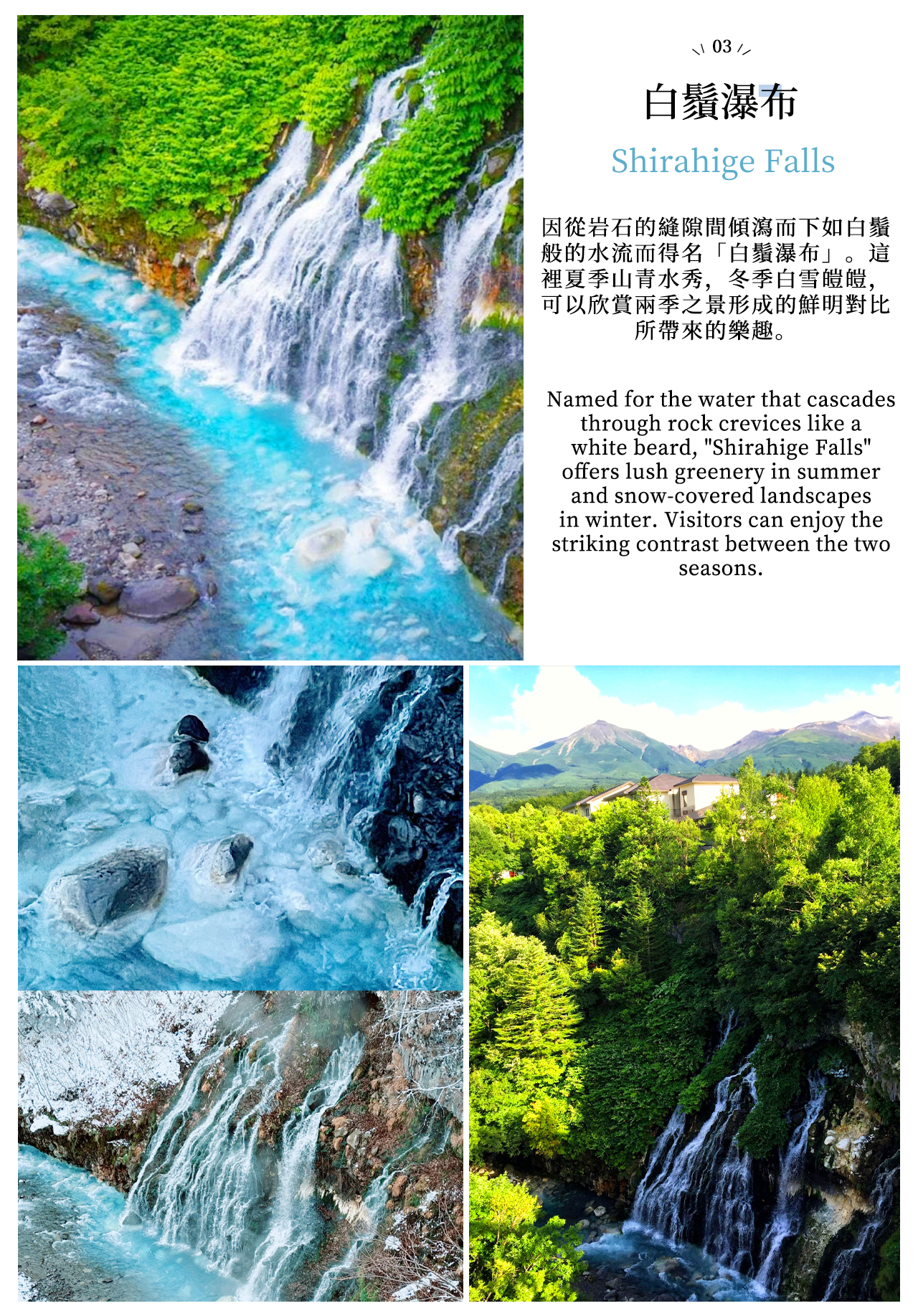 4-11 月春夏秋仙境:同款動物園萌寵互動,再追美瑛鈷藍青池、白鬚瀑布,精靈露臺淘手工好物,遇休園還能換泡白金溫泉。