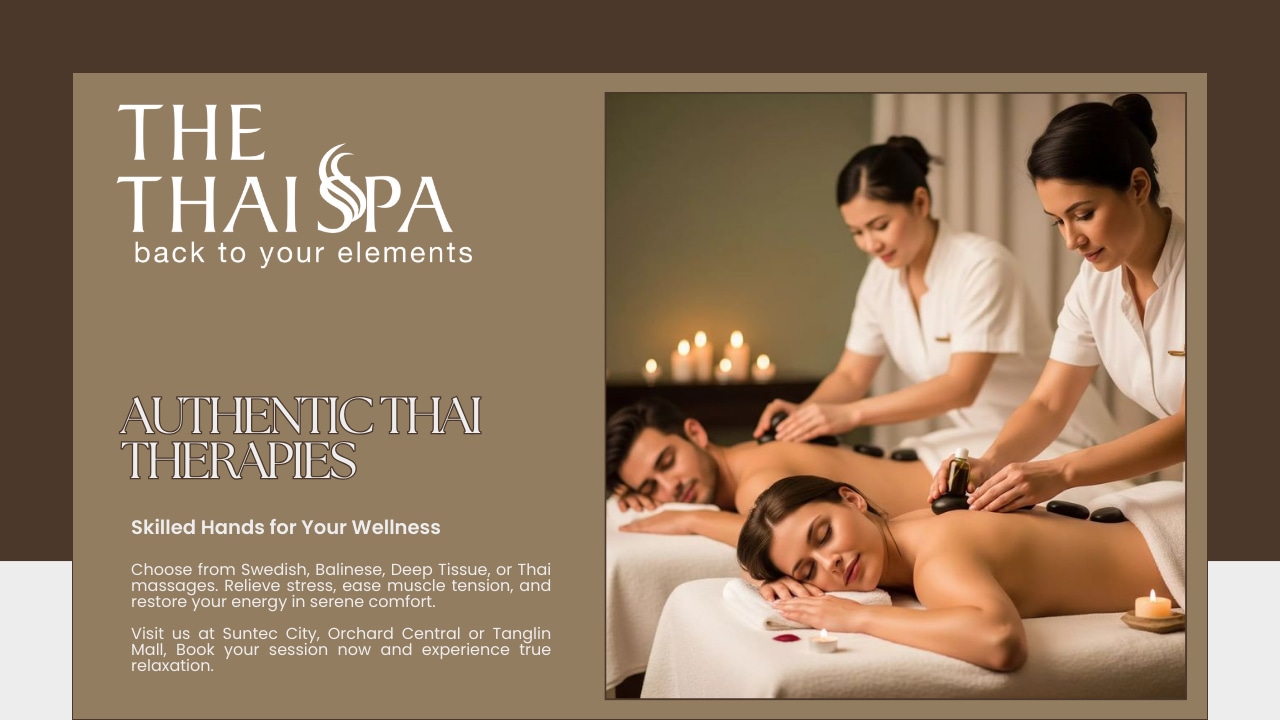 在新加坡市中心體驗泰國文化,享受按摩、臉部護理、身體磨砂和私人淋浴間。您還可以盡情享受私人雙人按摩浴缸,達到極致放鬆。