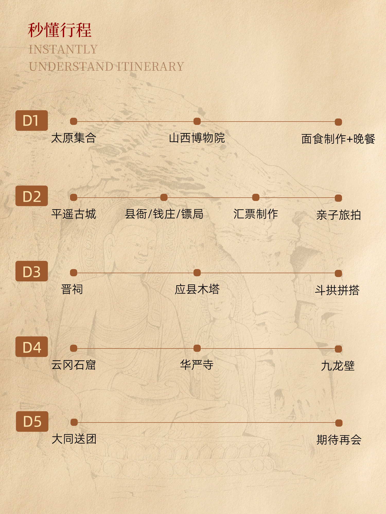 - DAY4:【古建奇觀】雲岡石窟,華嚴寺,九龍壁。宿大同(50KM,約1H)