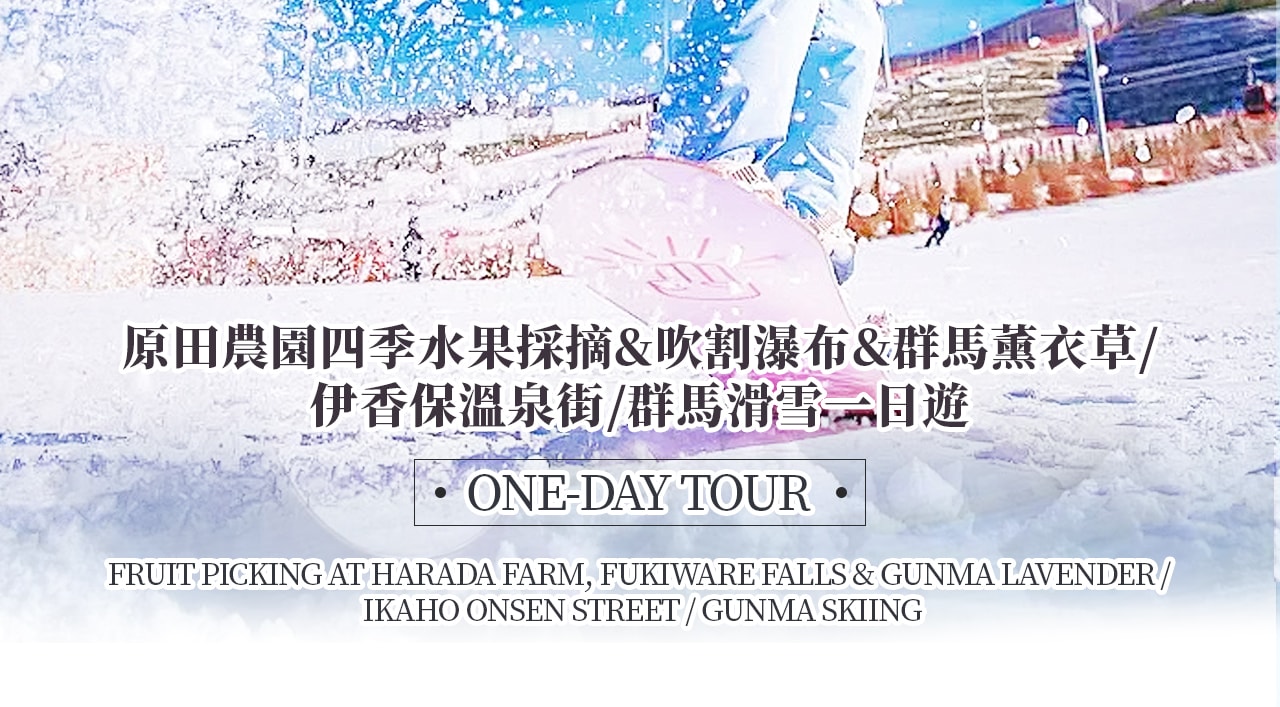 【親子推薦】群馬一日遊|原田農園水果採摘・吹割瀑布・薰衣草花田・滑雪・伊香保溫泉街|東京出發