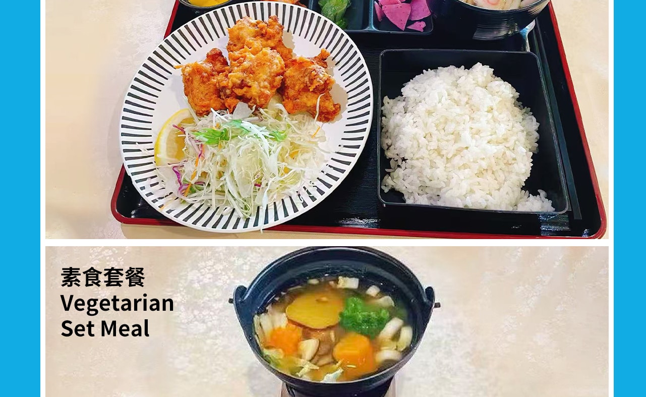 稍作休整後,享用地道日式午餐(雞塊飯、野菜餑託、牛肉鰻魚方案可選)。特別提醒:含餐方案下單時,請備註飲食偏好或特殊需求,我們將盡力安排。