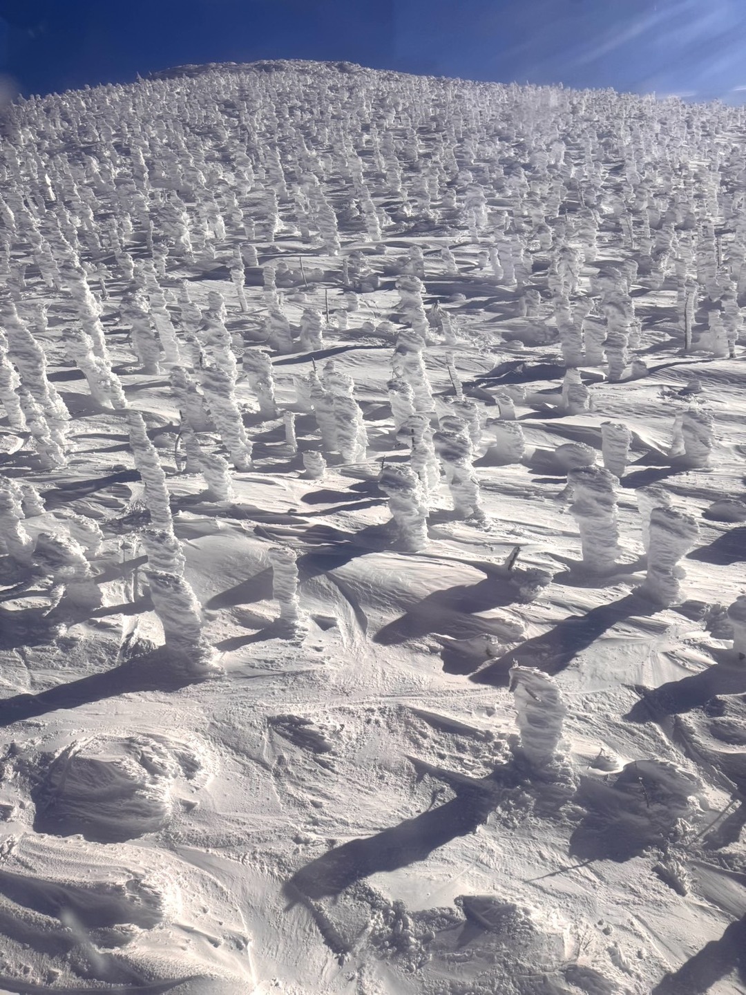 藏王山區的樹冰現象是日本冬季絕景之一,常在 1 月至 2 月期間最為壯麗。寒風與雪霧交錯作用於針葉樹,形成如怪獸般的冰雪造型。搭乘纜車至高原站漫步賞景,在雪白世界中猶如進入神祕雪國。