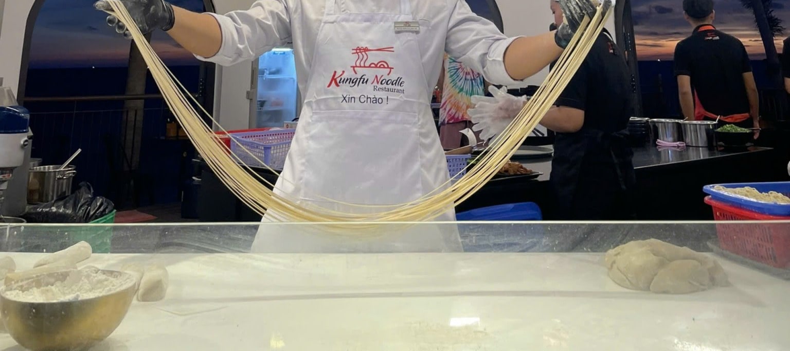參加日落之旅,前往富國島最具標誌性的日落景點——親吻橋和Vui-Fest夜市,度過輕鬆的夜晚。乘坐班車從飯店舒適地前往島嶼南部。在日落小鎮的親吻橋捕捉浪漫瞬間,在那裡,大海和天空以耀眼的色彩相遇。繼續前往熱鬧的Vui-Fest夜市,在那裡您將觀看精彩的功夫麵條表演,品嚐美味的手工拉麵。