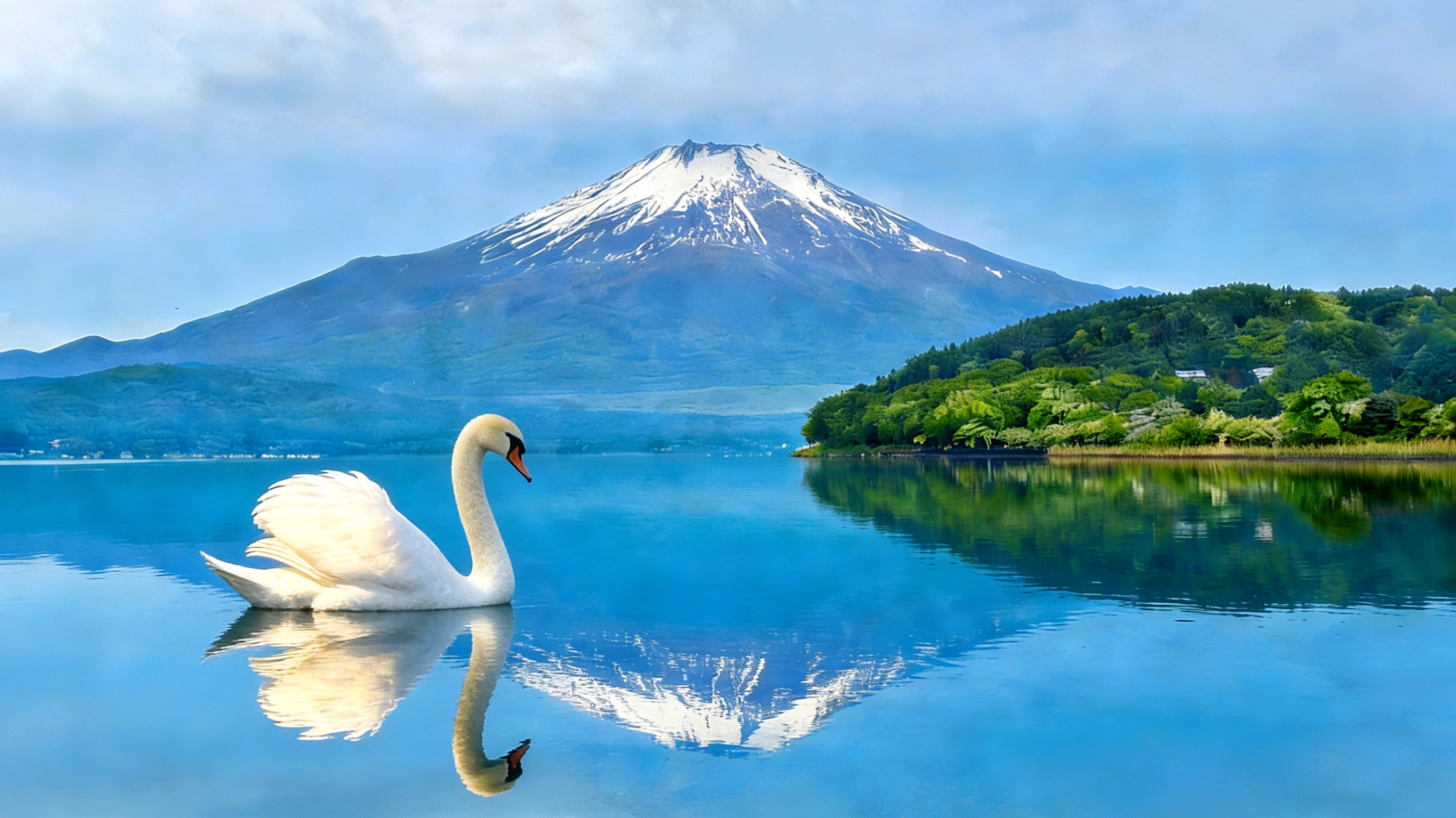 山中湖山中湖不僅是富士五湖之一,更是“天鵝湖”的美稱之地。這裡聚集著的白天鵝,它們與富士山的絕美景色共同構成了一幅靜謐的畫卷。遊客可以在湖畔購買飼料,與天鵝親密互動、餵食拍照。