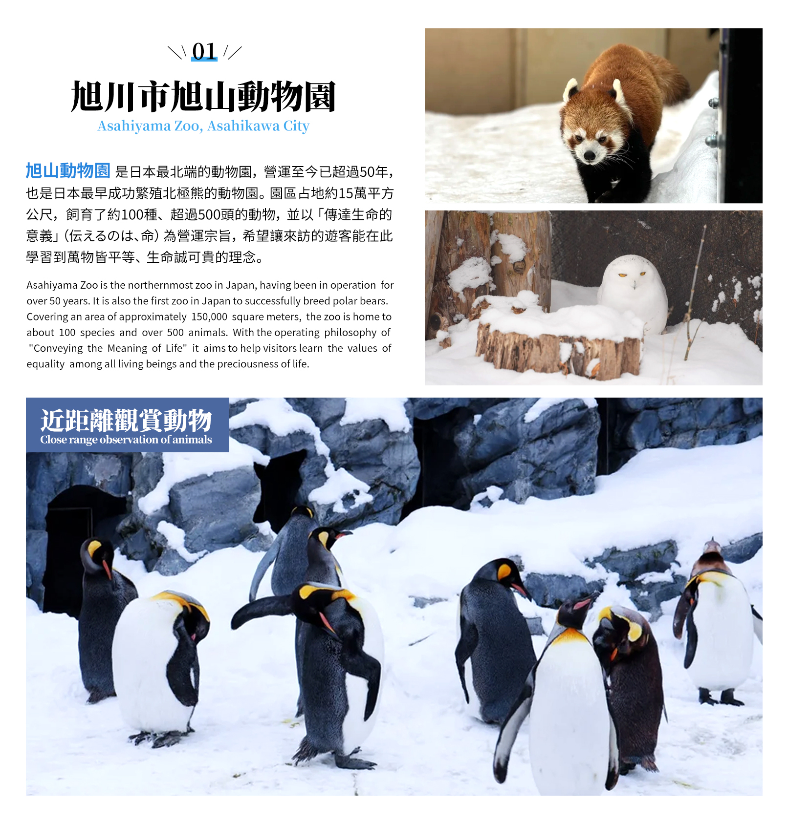 - 冬日熱門體驗:觀賞《旭山動物園》的冬季熱門招牌項目《企鵝巡遊》。
