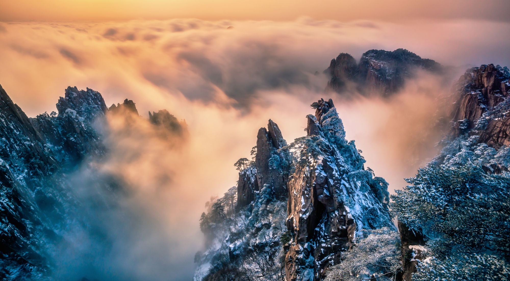 黃山風景區位於安徽黃山市黃山區湯口鎮,以奇松、怪石、雲海、溫泉“四絕”聞名,另有霧凇、雪景、日出等絕美景觀,被譽為“五嶽歸來不看山,黃山歸來不看嶽”。景區設南、西、北三門,遊客多從南門湯口鎮入,乘新國線班車前往前山(慈光閣)或後山(雲谷寺)。遊覽線路主要分為前山、後山及西海大峽谷三部分。前山景色雄偉,有迎客松、蓮花峰、天都峰等著名景點;後山秀麗精緻,擁有始信峰、飛來石、猴子觀海等奇景;西海大峽谷幽深壯觀,被譽為黃山精華之地。常規路線多為兩日遊,可選擇前山上後山下或後山上前山下;一日遊則建議乘索道往返。山頂住宿集中於光明頂、天海、排雲亭、白鵝嶺等區,光明頂適合觀日出,是遊覽與住宿的熱門選擇