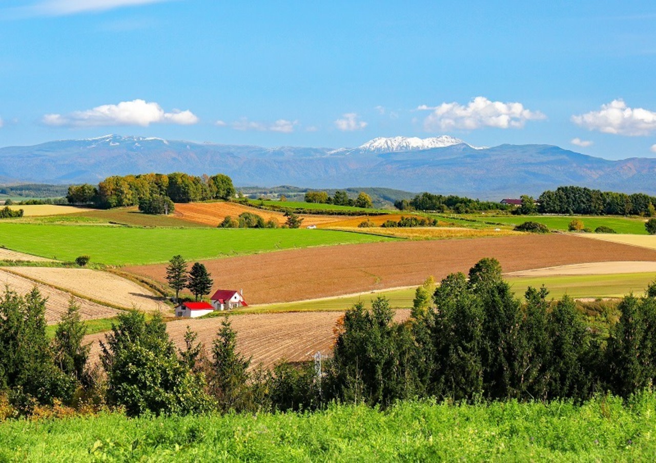 ・ 周圍丘陵起伏,展現北海道典型田園景觀。