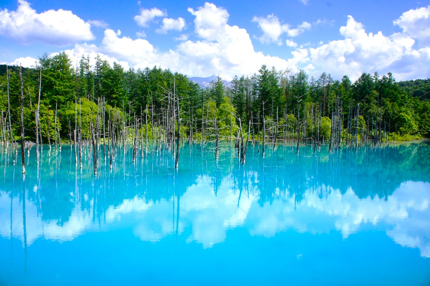 ・枯木與藍色池水形成對比,是北海道知名攝影景點之一。 - 白鬚瀑布——水文奇觀與地質景觀
