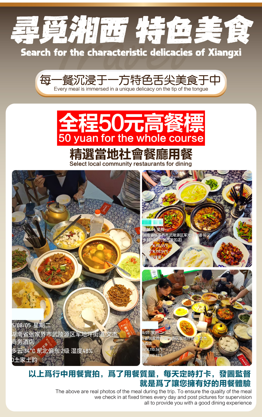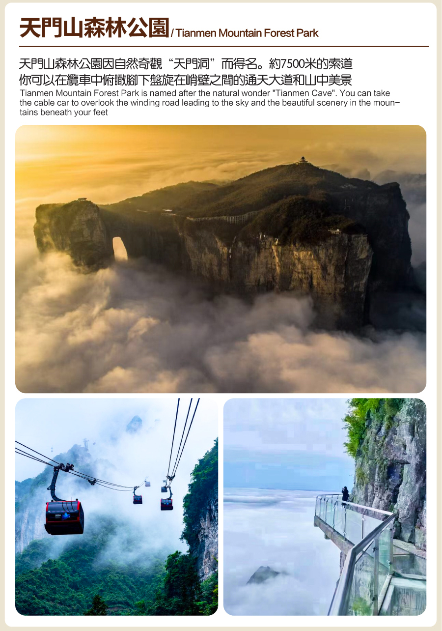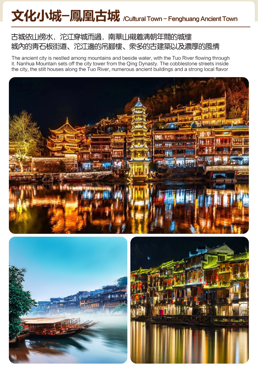 第三天:張家界➠芙蓉鎮➠鳳凰🚌全程高速 🌸行程:搭天門索道體驗7455米高山觀光索道➠穿越天門洞➠玻璃棧道➠芙蓉鎮➠鳳凰璀璨夜景 🌸體驗:暢玩湘西神山 | 芙蓉鎮&鳳凰