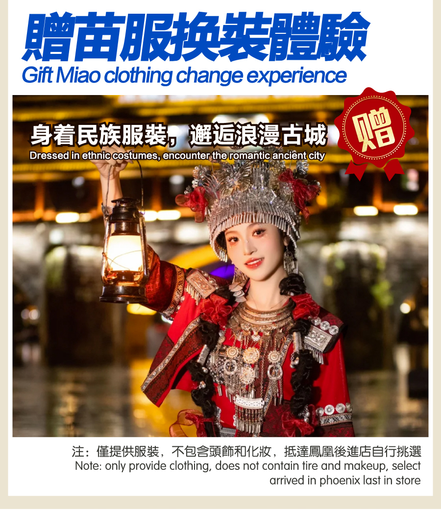 ✔ 贈 · 苗服體驗:身著苗族盛裝,定格山水人文相映的旅拍時刻(含服裝,妝造自理)行程組合經典且高效