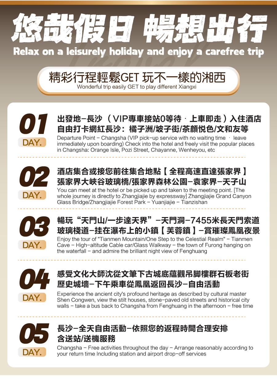 DAY1:【初探星城】全國出發➠長沙⭐️ 🌸行程:長沙VIP專車接機/站(1單1接 0等待) ➠入住飯店 🌸自由活動推薦:網紅景點-橘子洲|坡子街|火宮殿|文和友|省博物院等