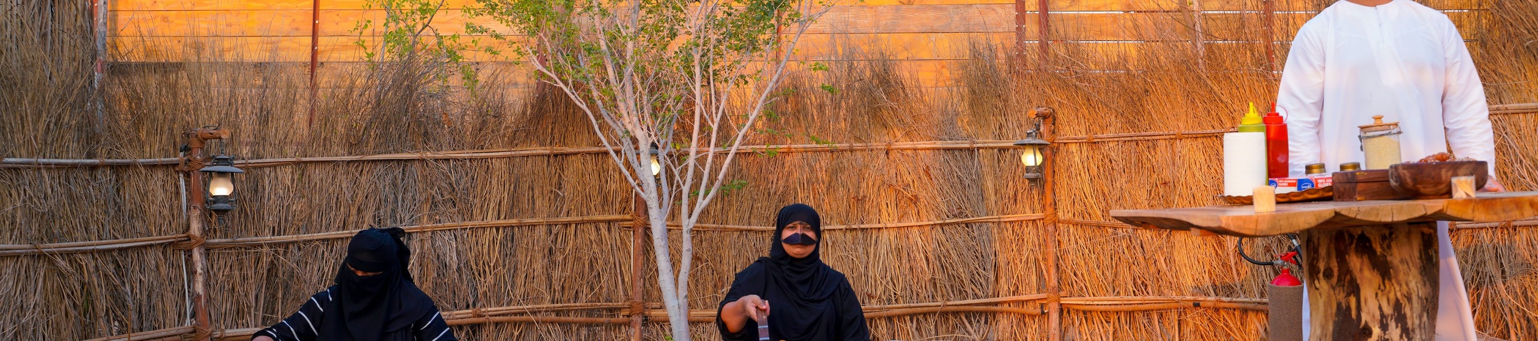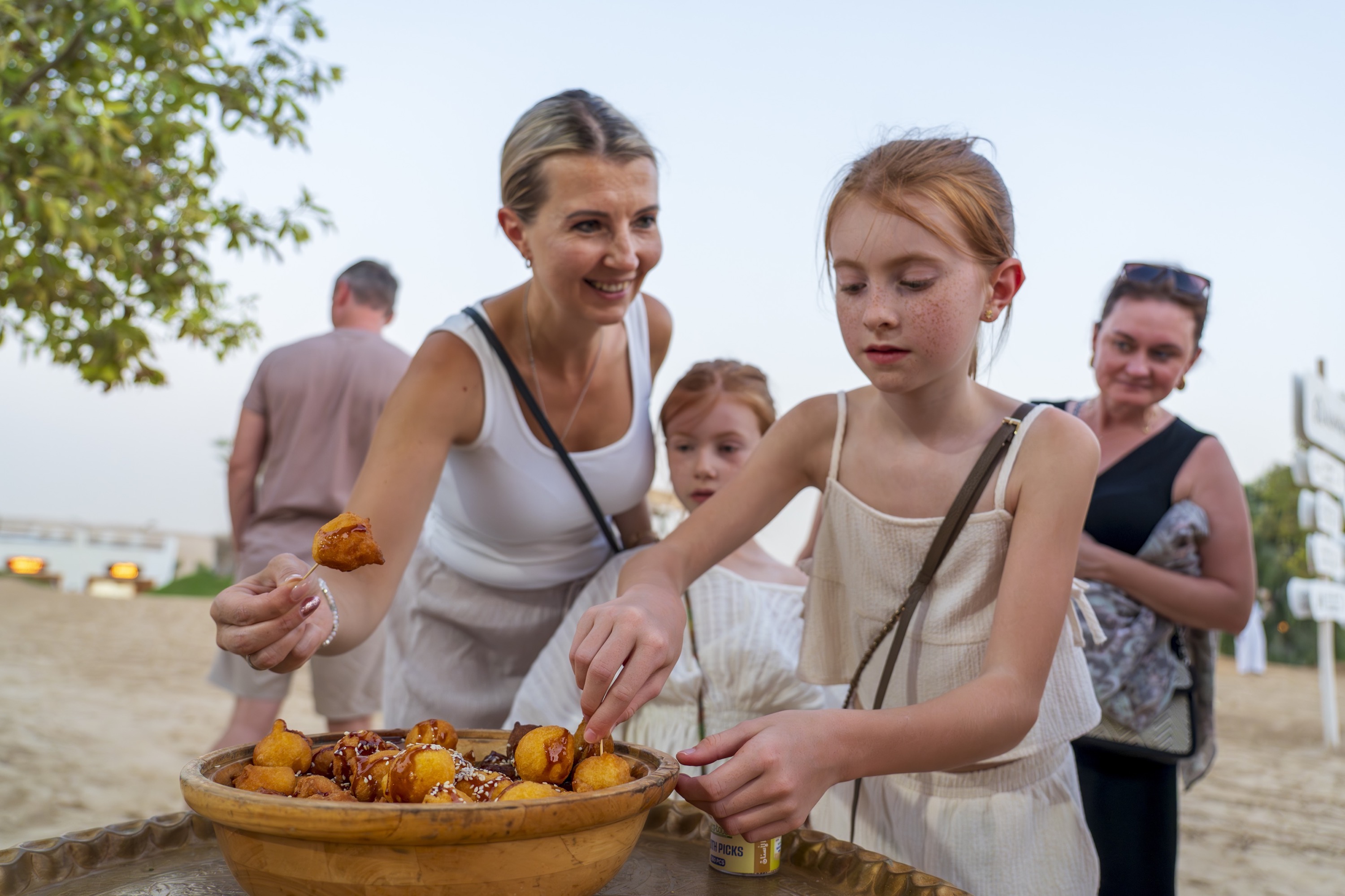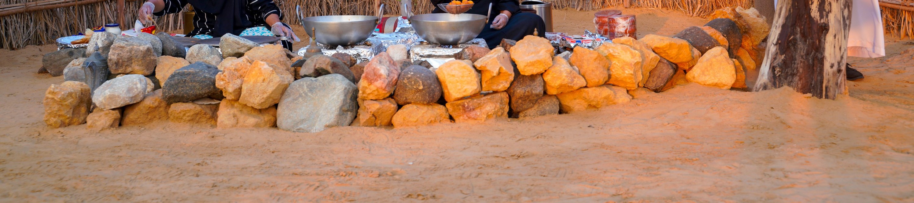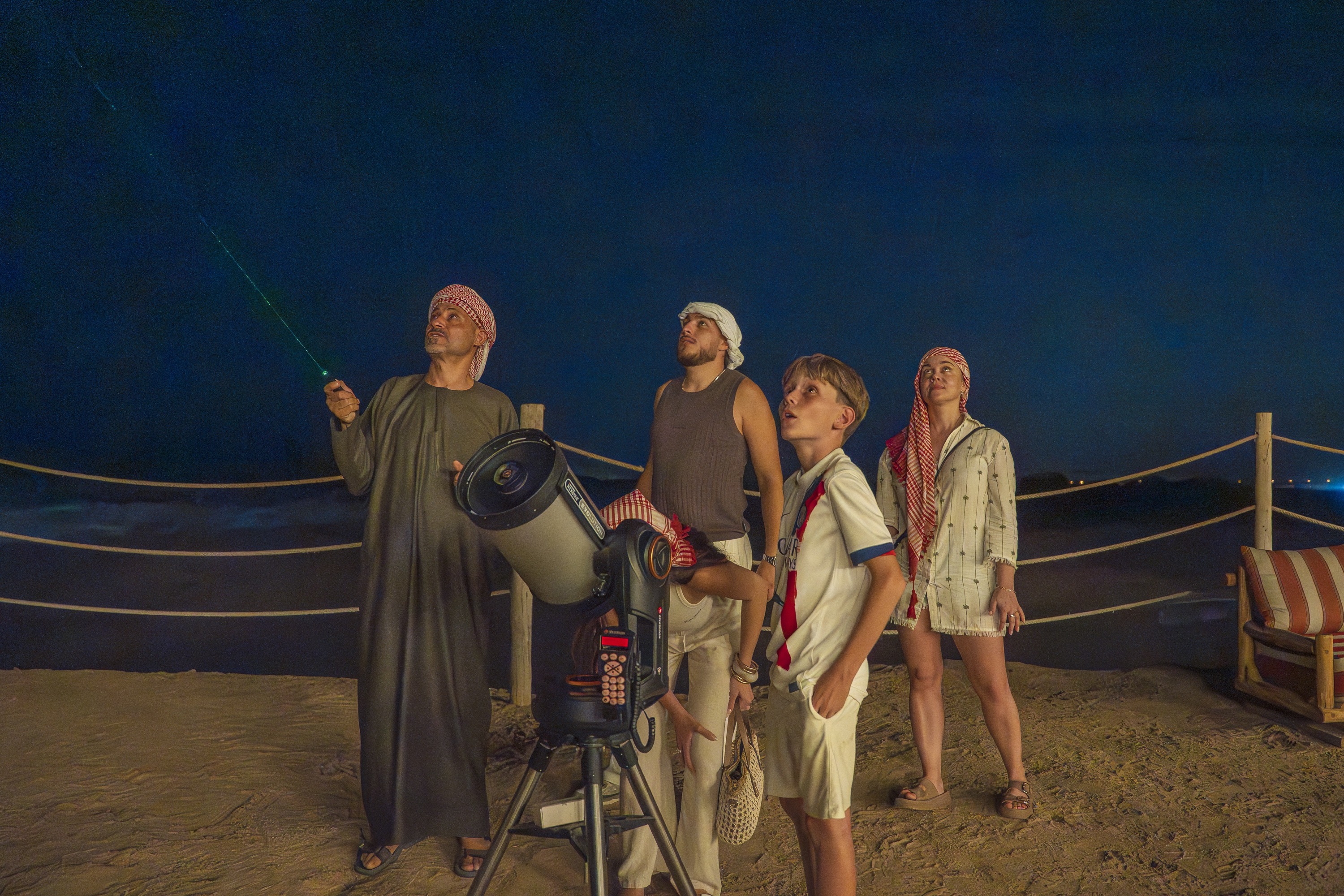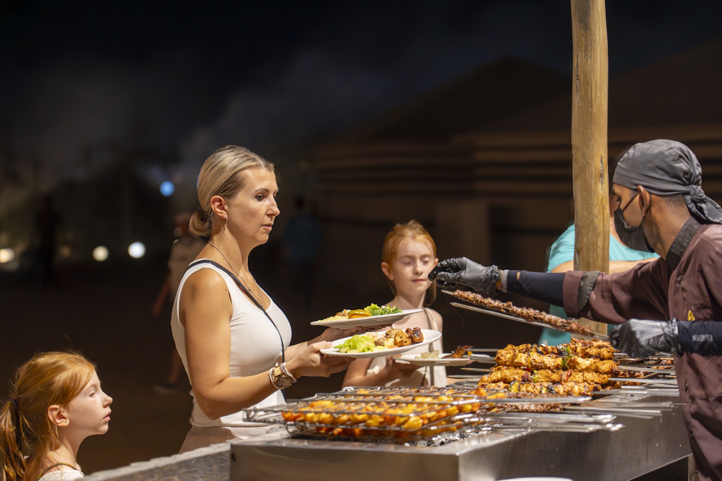 在 Al Marmoom Oasis 的金色沙丘中迎接新年。您將會品嚐到阿拉伯咖啡 (qahwa)、椰棗和傳統甜點 (gaymat),以及無限暢飲的軟性飲料和水。營地內有熱鬧的活動,還有阿拉伯自助餐,包含現場燒烤、羊肉飯 (lamb ouzi) 和素食選項,餐點由榮獲米其林必比登推薦的 Al Khayma Heritage Restaurant 提供。您還可以享受阿拉伯娛樂活動,例如:指甲花彩繪、駱駝騎乘、與獵鷹合照、水煙和咖啡製作。午夜時分,您將在沙漠夜空中欣賞璀璨的煙火表演,並透過望遠鏡觀賞星空。