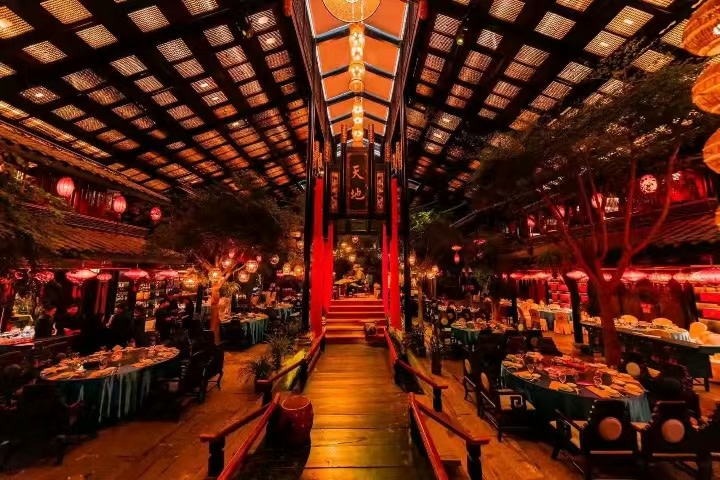 - 推開掛著名家手書匾額的木門,麗江五花石鋪就的小徑蜿蜒向前,蘇式花窗將庭院景緻框成一幅流動的畫。尋一處心儀的位置落座,點一壺地道蓋碗茶,茶香嫋嫋間,遠處戲臺上弦樂漸起,老成都 “品茗聽戲” 的愜意,便順著風悄悄落在身上。若偏愛開闊景緻,提前預約臨江席位,還能伴著流水聲,將這份悠然拉得更長