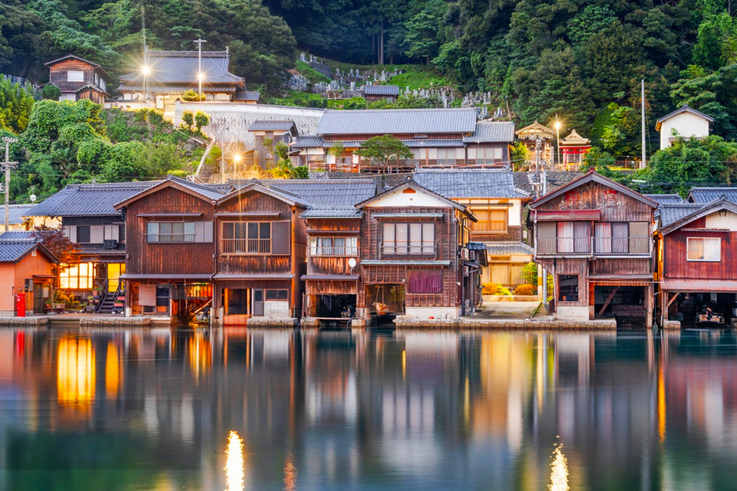是位於日本京都府北部的一個小漁村,以其獨特的“一樓停船、二樓住人”的木質建築而聞名,彷彿漂浮在海上的小村落,被譽為“海上京都的”日本威尼斯”。