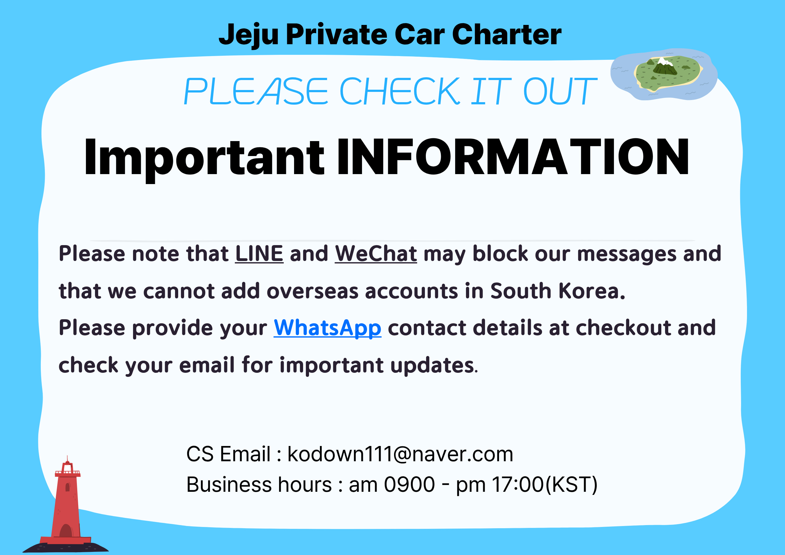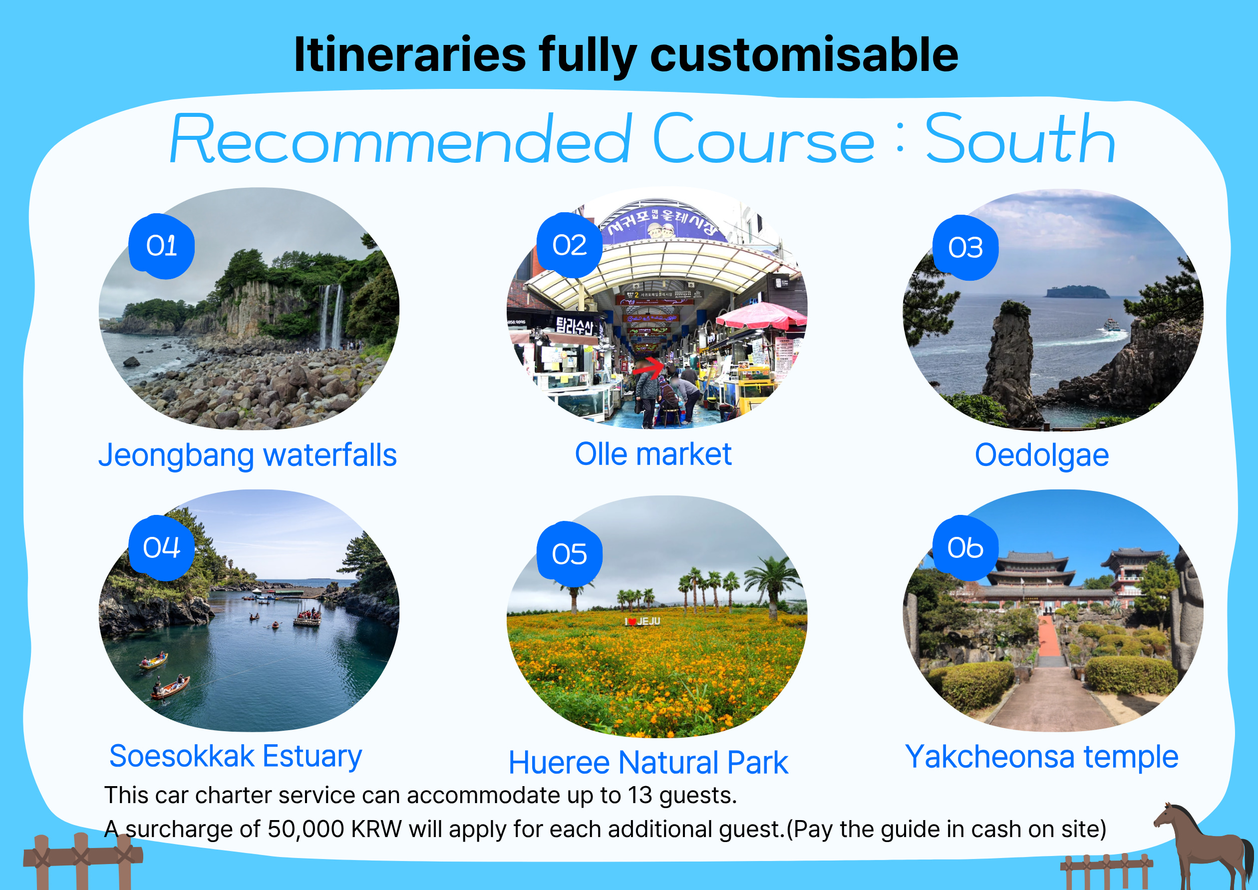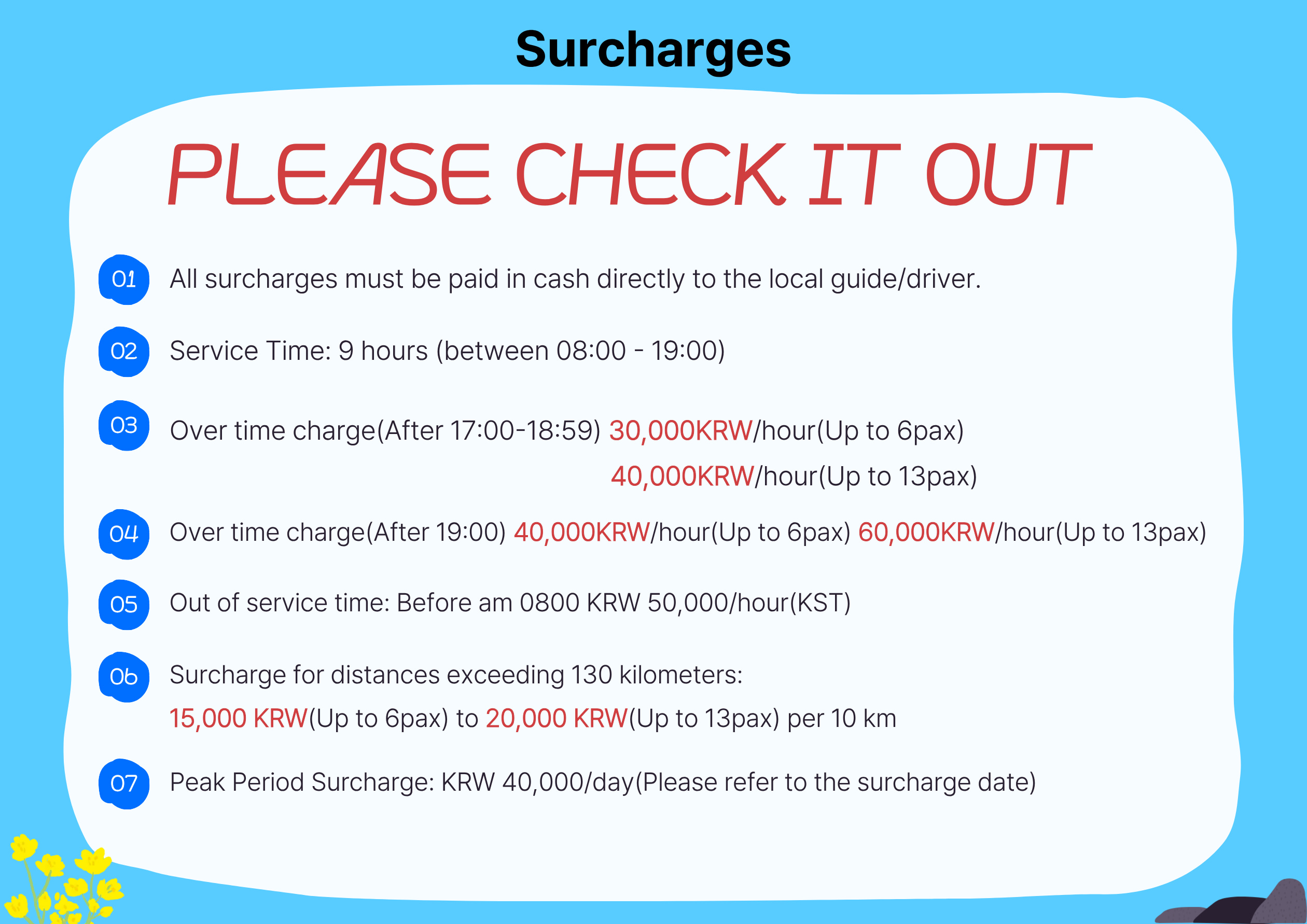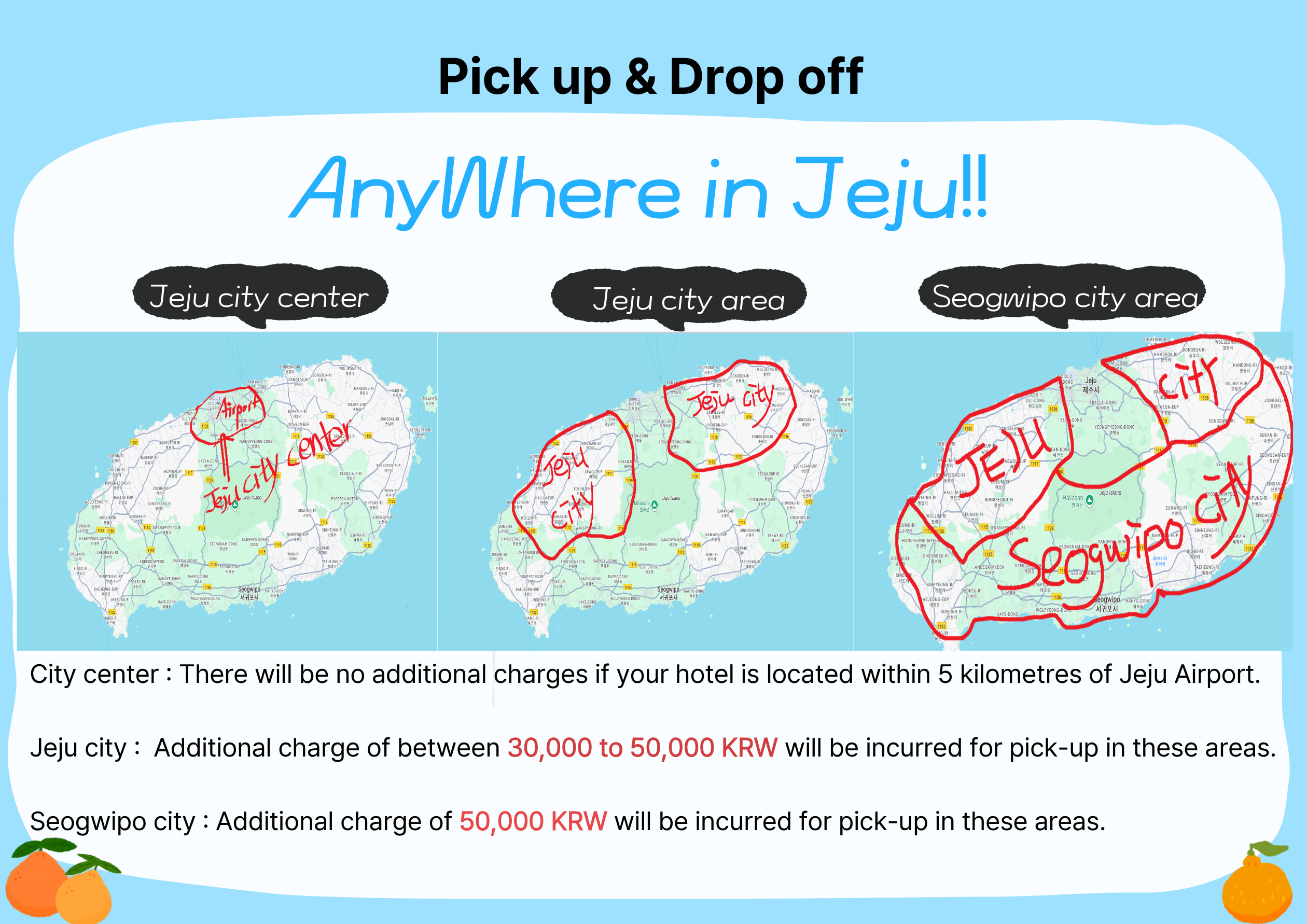 - 濟州市區外(例如:西歸浦、涯月、翰林):加收 KRW 30,000 - 50,000