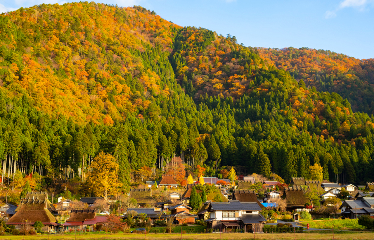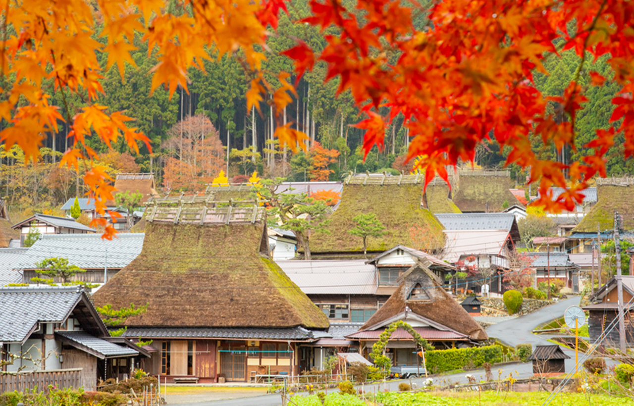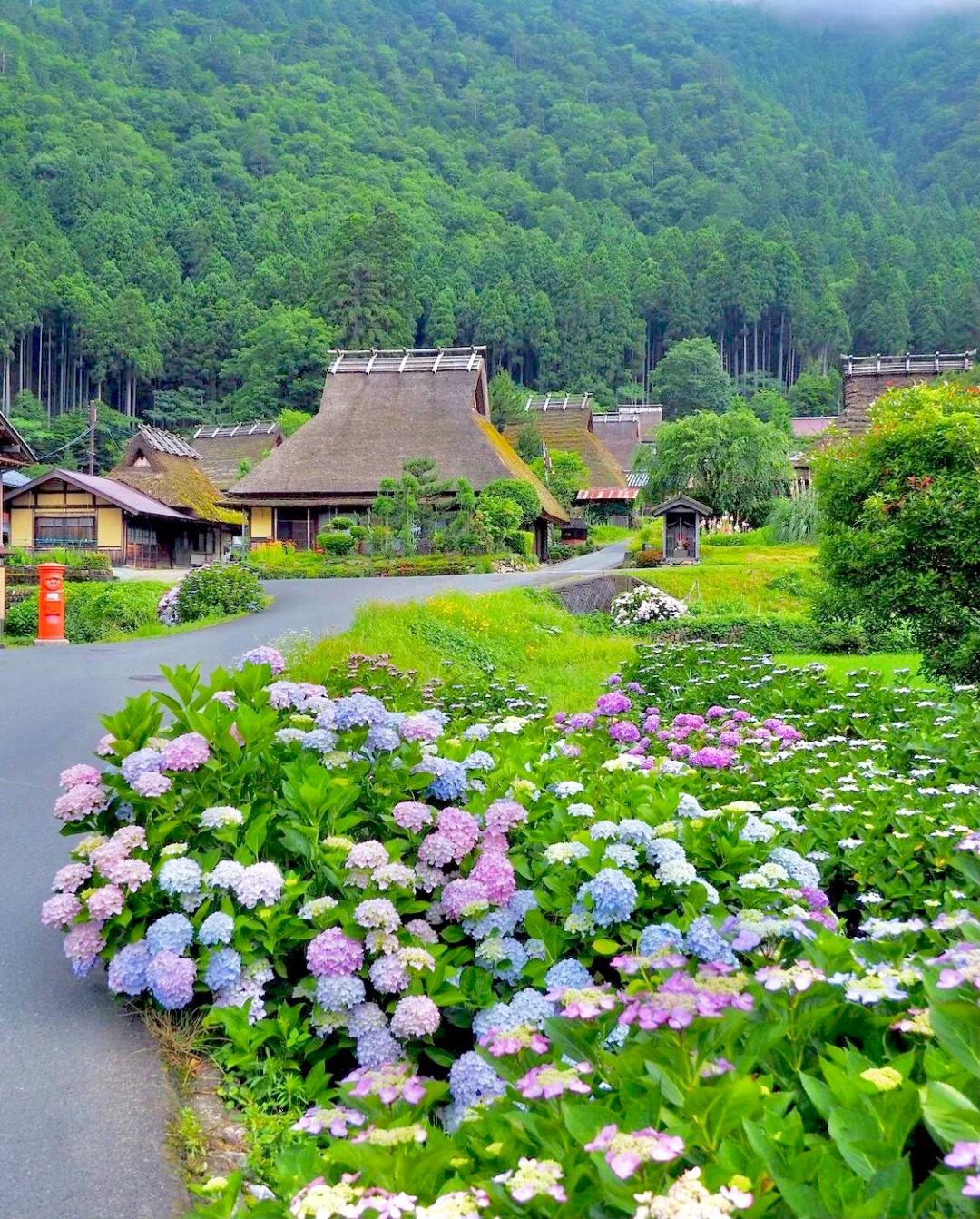 美山町位於京都北部,以保存完整的茅草屋“合掌村”而聞名,被稱為京都的童話鄉村。這裡遠離城市喧囂,四季景色清新迷人:春櫻、夏綠意、秋紅葉、冬雪景皆如明信片般美麗。漫步在傳統鄉間小路間,感受最純粹的日本鄉村風情。