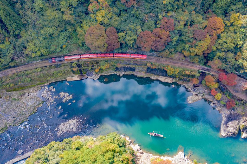 搭上嵯峨野觀光小火車,沿著桂川慢慢晃,窗外竹林、山谷、紅葉美景一覽無遺。春夏綠意、秋天紅葉、冬日白雪都超好拍,輕鬆放空又超適合拍網美照!