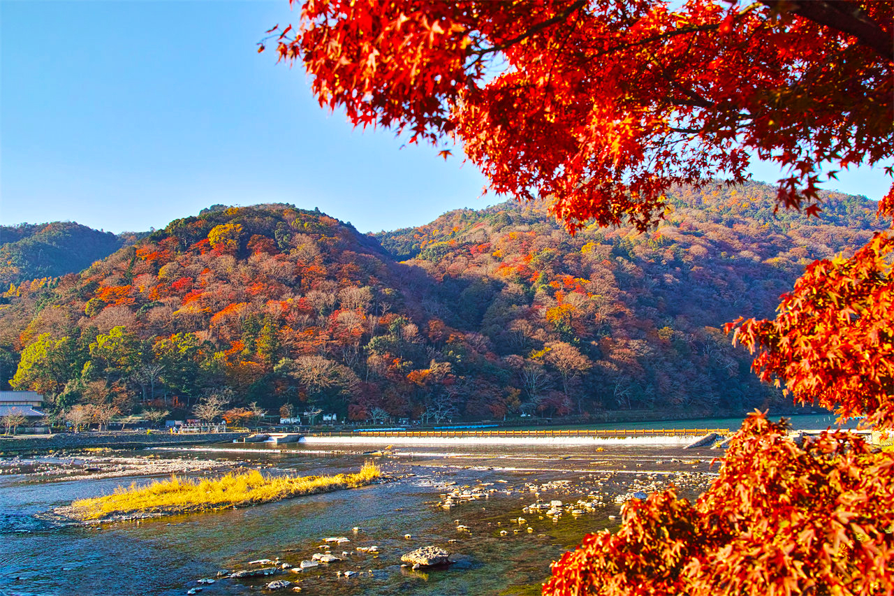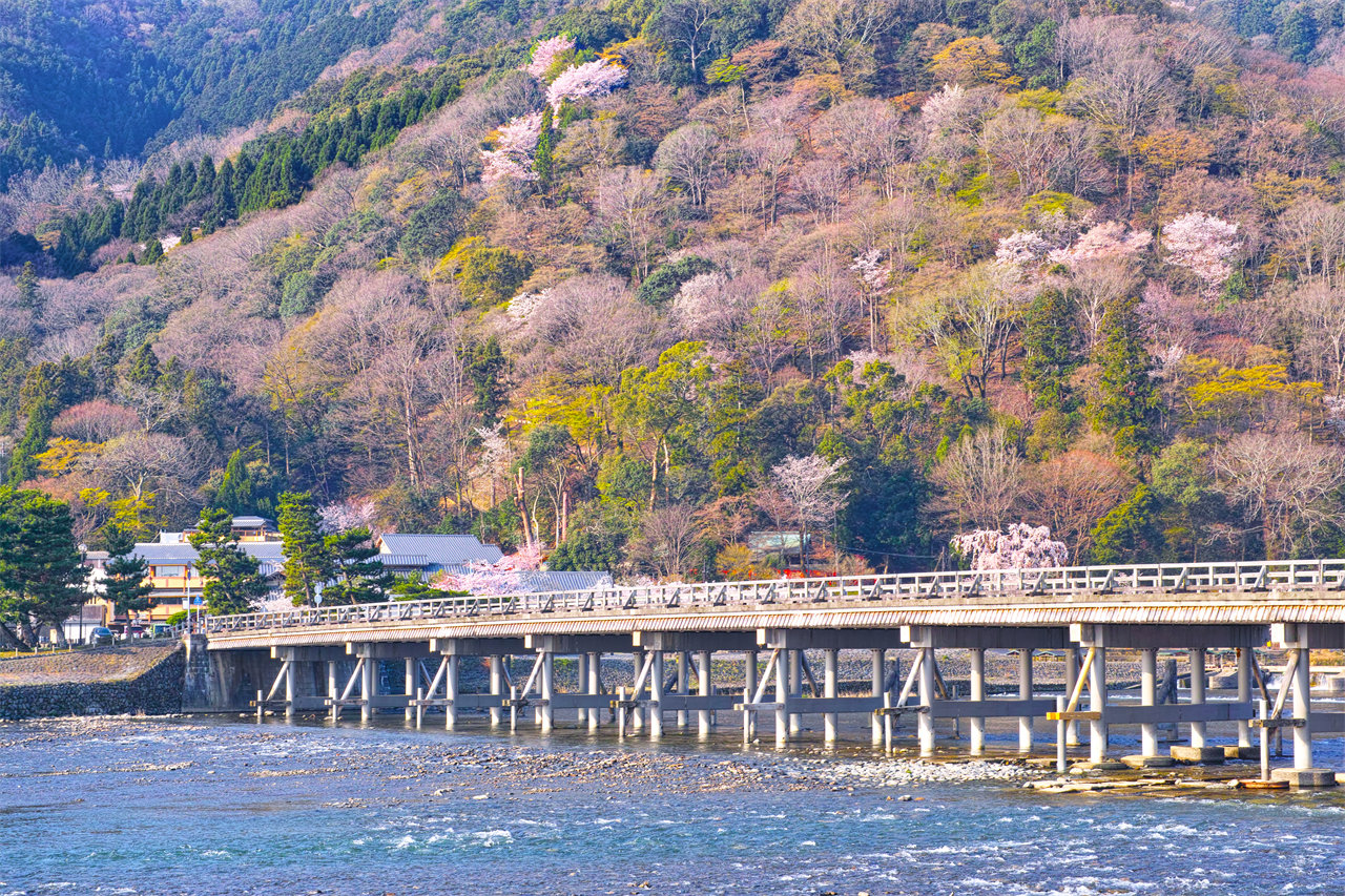 渡月橋-百年京都風景畫 嵐山的門面擔當!渡月橋橫跨桂川,春有櫻、夏有綠、秋有楓、冬有雪,怎麼拍都像日劇場景。名字取自“月過橋如渡”,詩意滿滿~