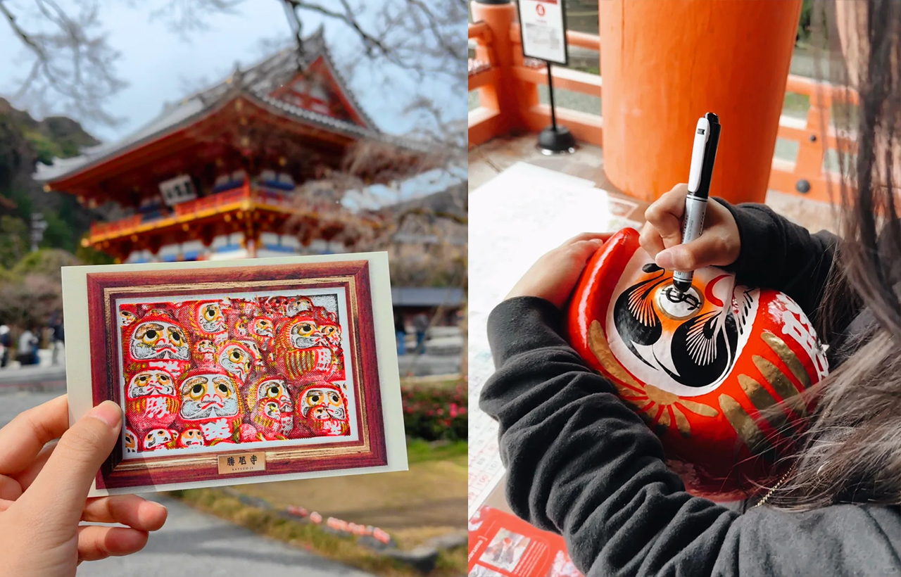 達摩象徵“勝運”與堅持,許多旅客會在此寫下心願,祈求事業、學業與戀愛順利,是超人氣打卡亮點。