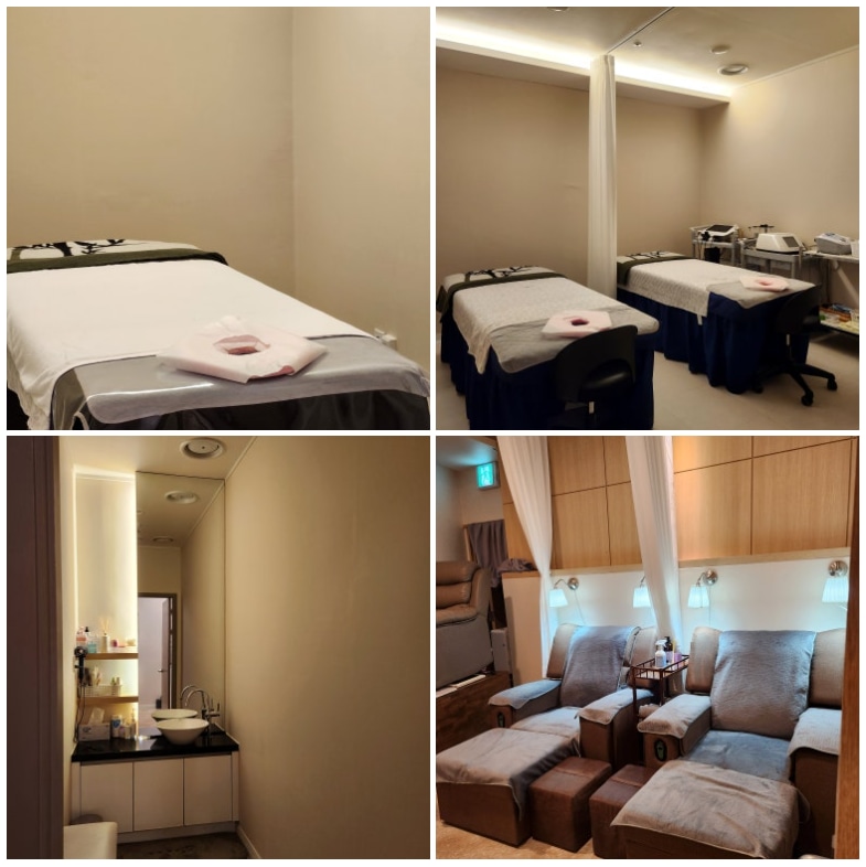 - 道地韓式養生體驗:提供 90 分鐘課程選擇,包含按摩、芳香療法、深層組織按摩、淋巴引流,或頂級頭部 SPA 和頭皮護理。