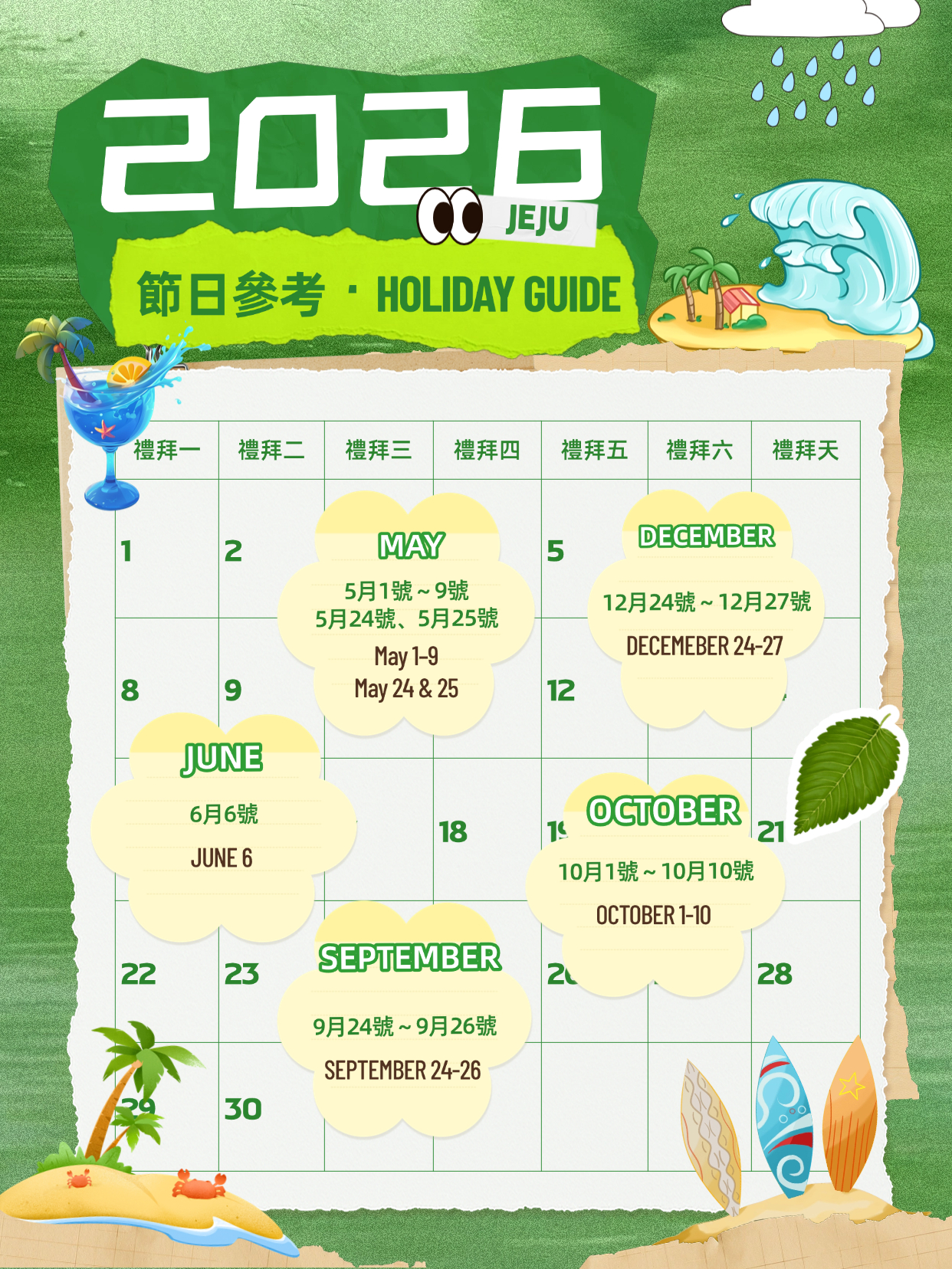 - 請務必提供正確的飯店地址(濟州市區內/外),資訊錯誤可能導致現場額外收費。