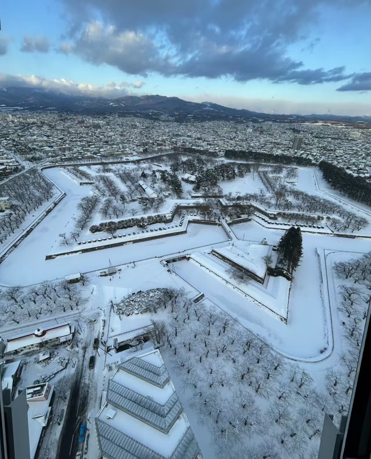 3.五稜郭公園漫步:踏入充滿歷史韻味的五稜郭公園。這座公園以其獨特的星形城郭而聞名,是日本江戶時代末期的重要軍事防禦建築。您可以登上五稜郭塔,俯瞰整個公園及函館市區的全景,感受歷史與現代的交融。