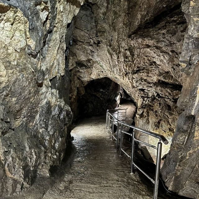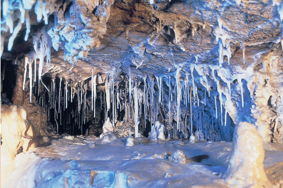 據說大鐘乳石洞在2億5000萬年前曾為一片汪洋,珊瑚歷經歲月演變成各種造型奇異的鐘乳石。全長800公尺的鐘乳石洞,搭配洞窟內的打光,更增添鐘乳石的神秘魔幻姿態。