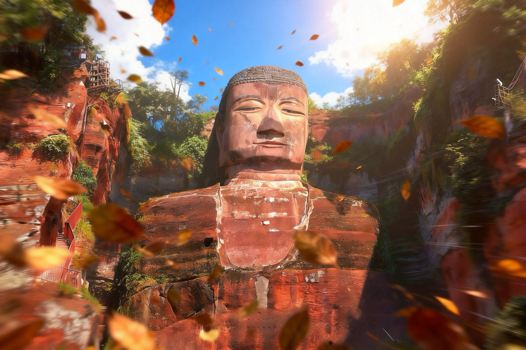 - 高潮雙重衝擊🎭:徒步探秘71米樂山大佛🗿,觸摸千年石刻肌理、探訪古寺;奔赴蘇稽古鎮🏮,解鎖非遺蹺腳牛肉舌尖盛宴,漫步川西水鄉;