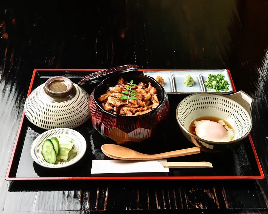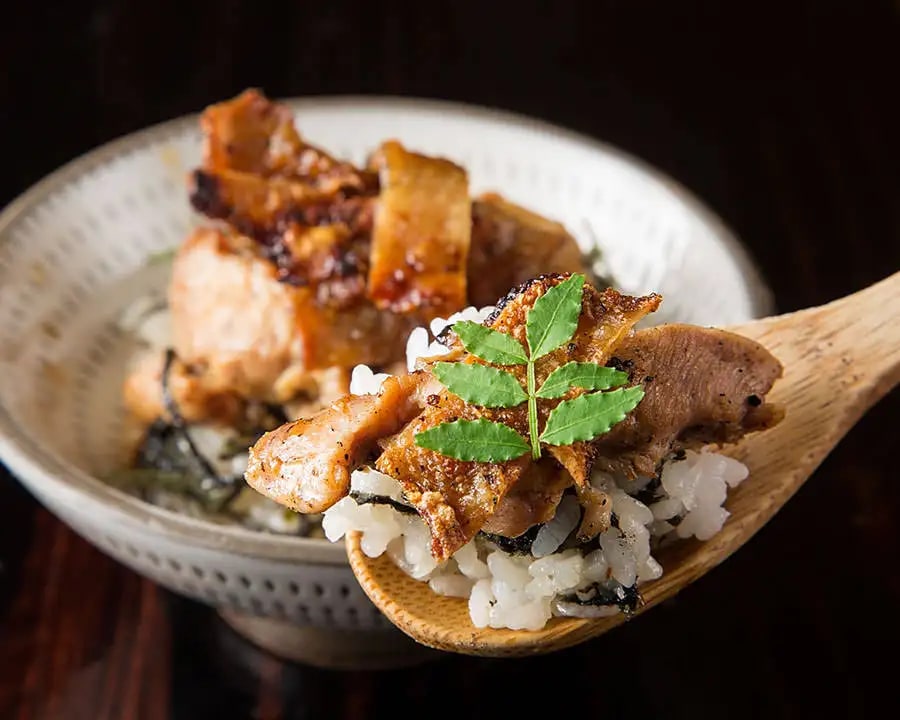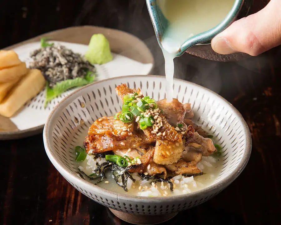 「博多雞肉拌飯(とりまぶし)」源自福岡深厚的雞料理文化,結合水炊鍋與燒鳥的精髓,打造出層次豐富的經典名物。