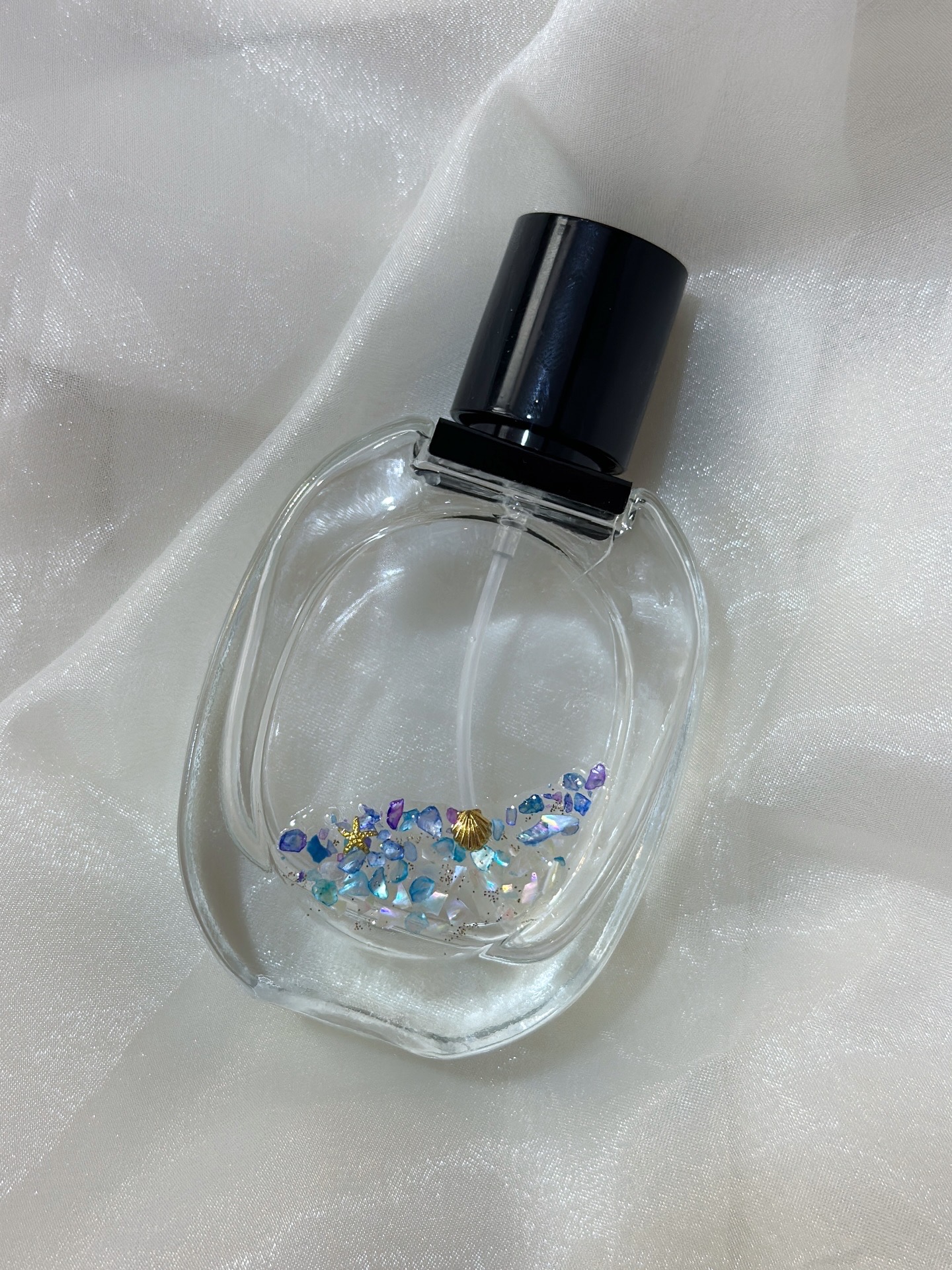 調配 30ml 專屬香水,並以珍珠母貝裝飾瓶身,完成後即可帶回家。設計您的獨特香氣,打造獨一無二的香水瓶。