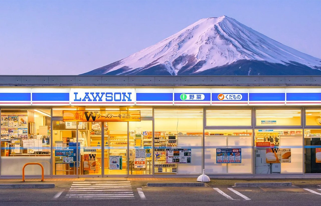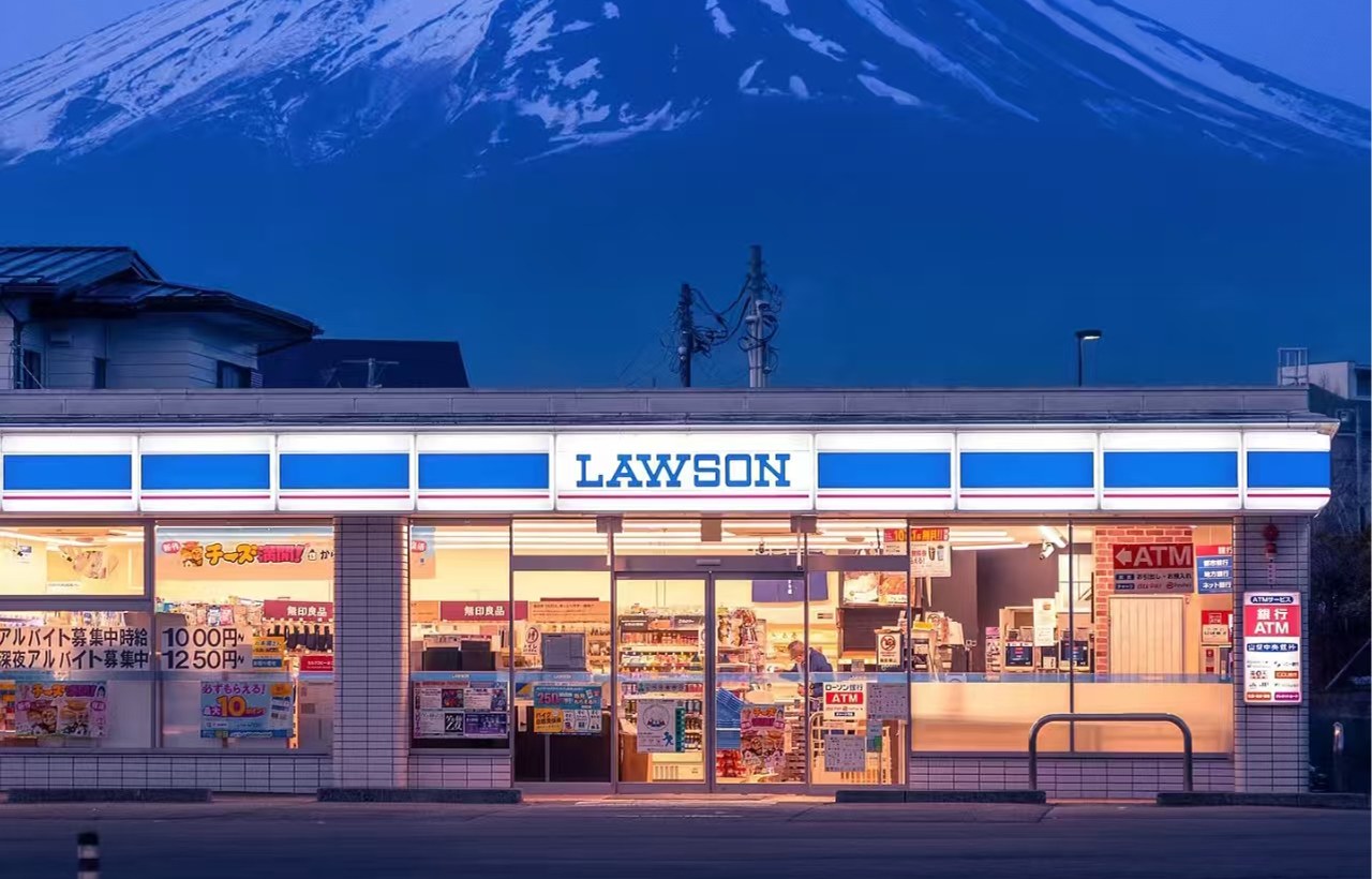 - 網紅便利店打卡點,在羅森便利店拍攝富士山街景生活大片