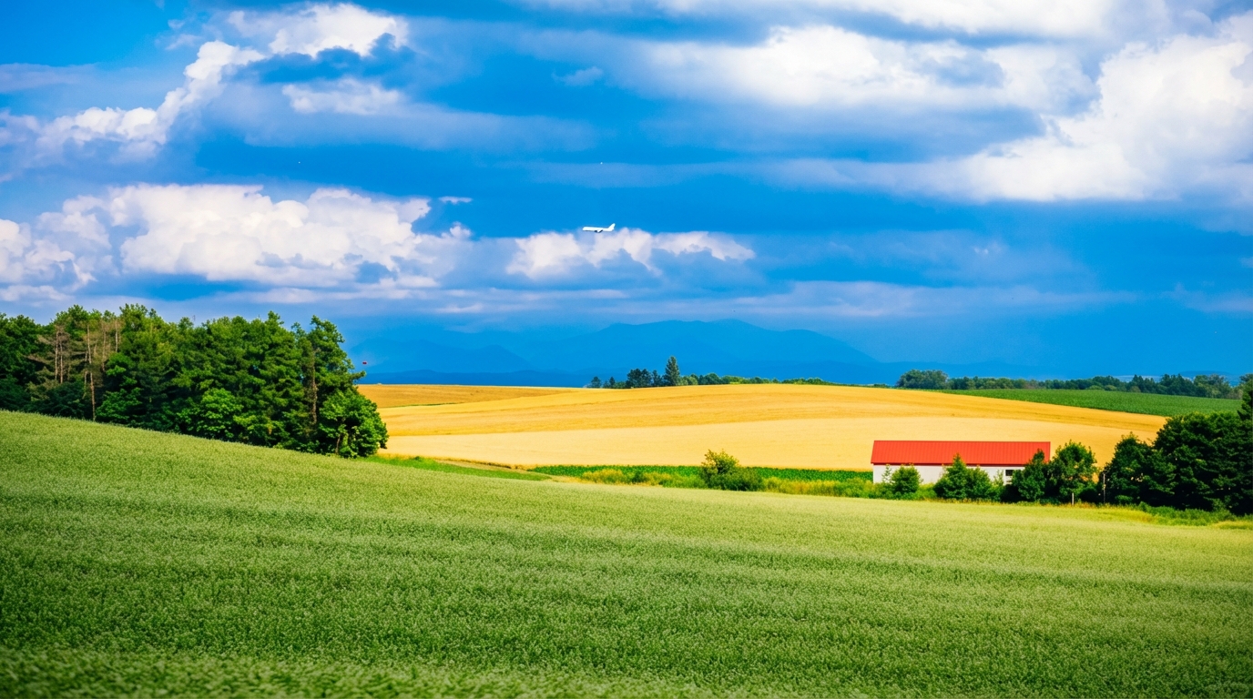 欣賞北海道丘陵花田與田園風光