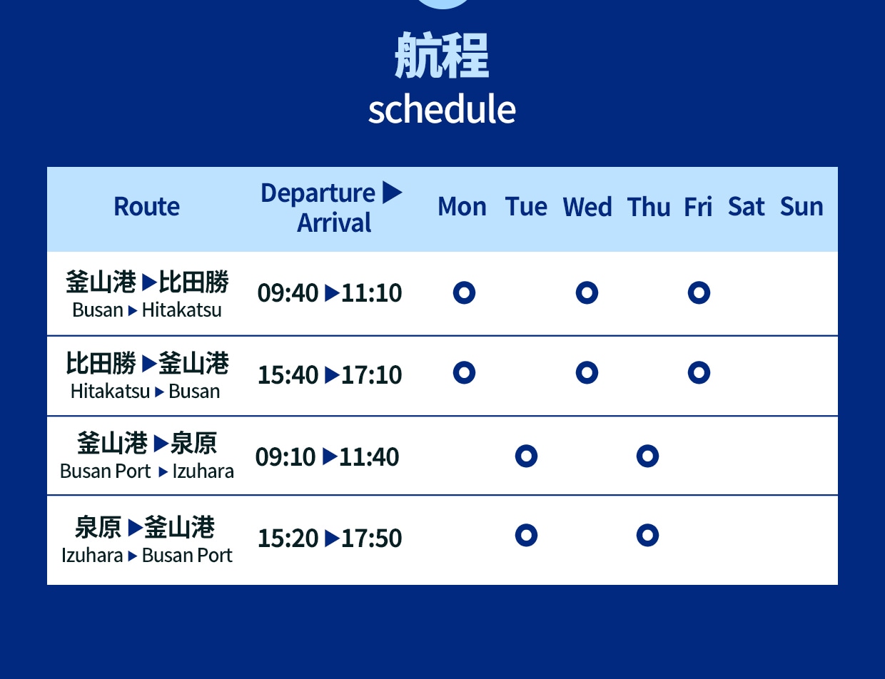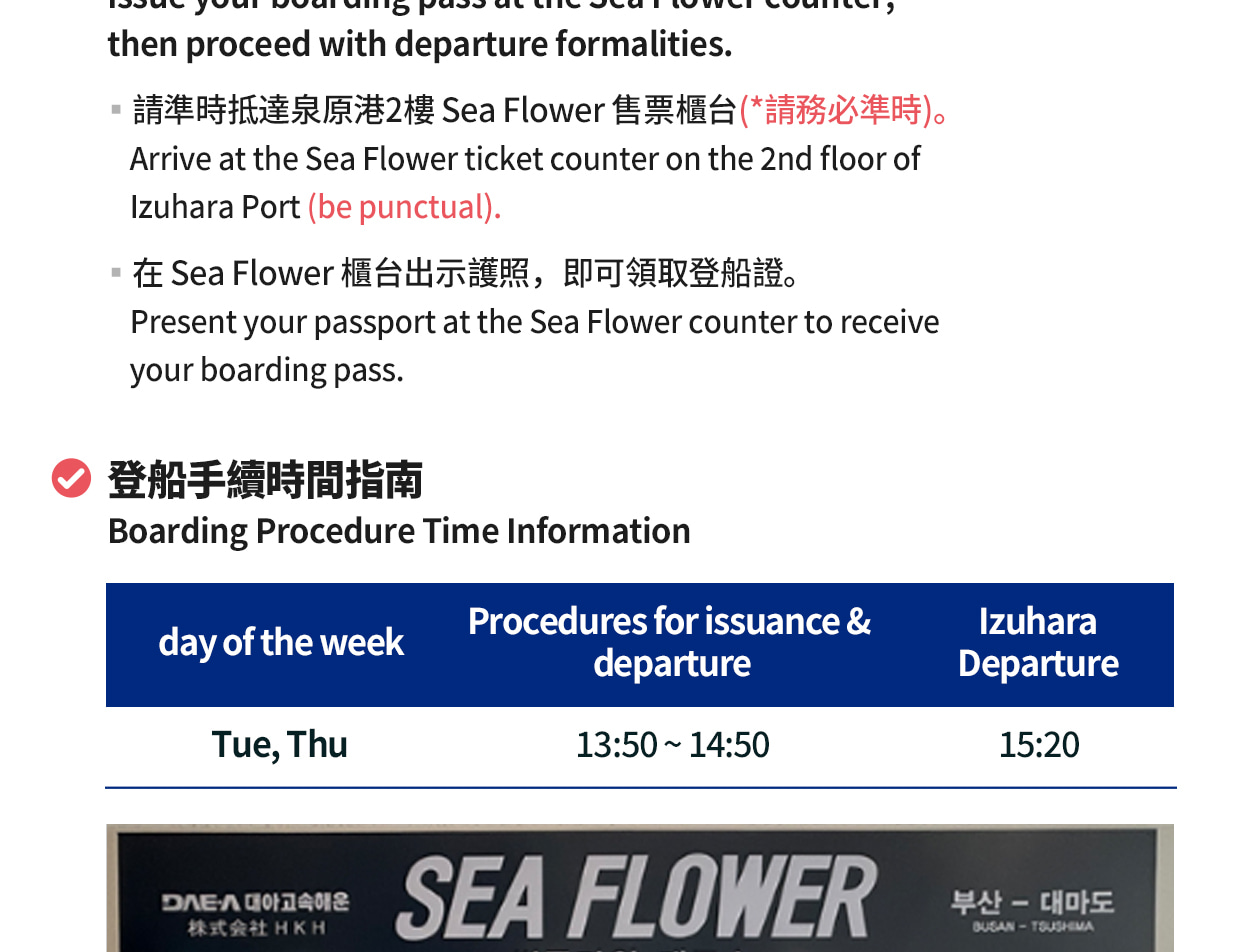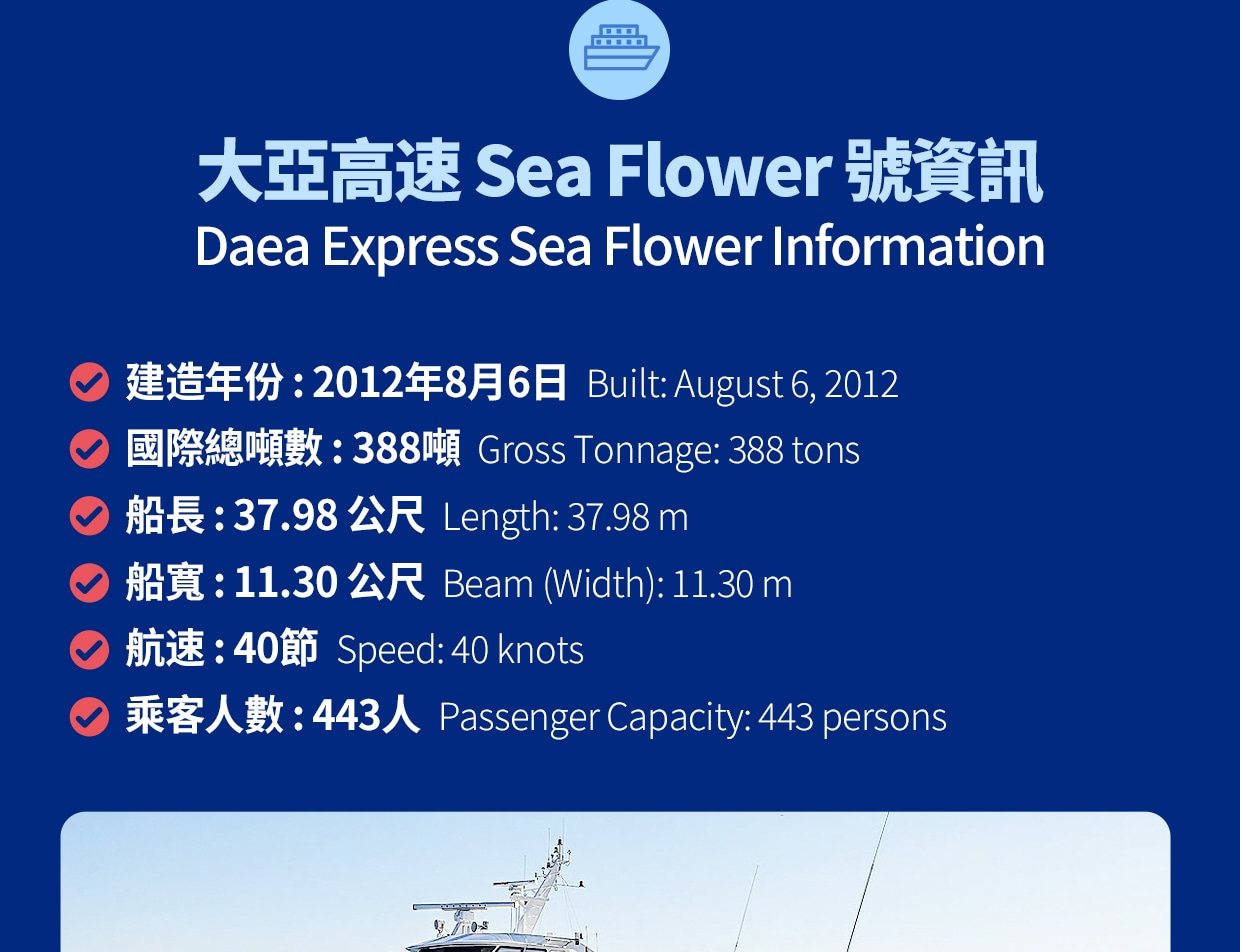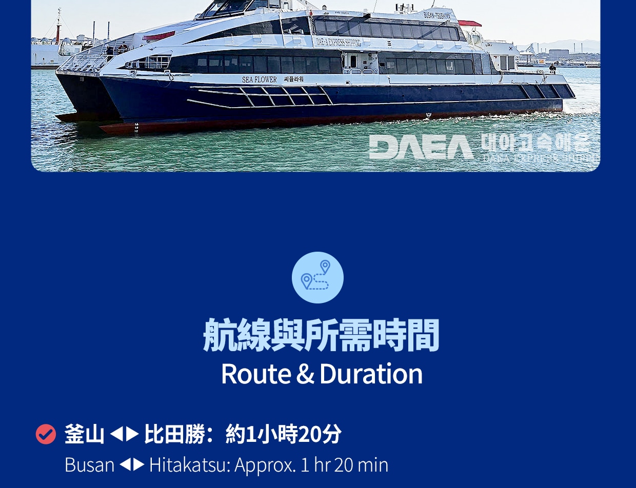 - 快速舒適旅程: 搭乘安全可靠的 Daeya Seaflower,體驗前往日本最便捷的航線